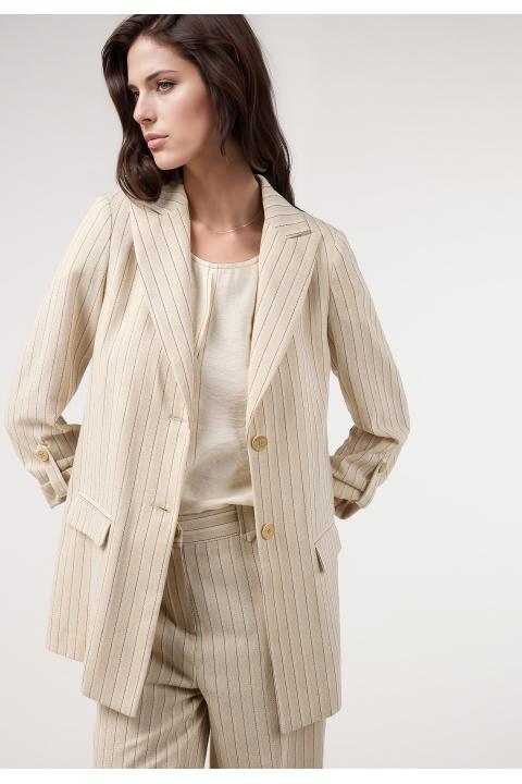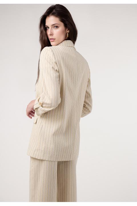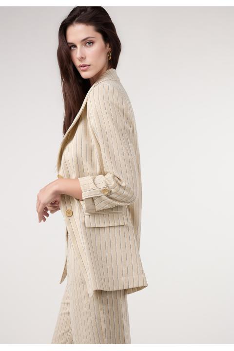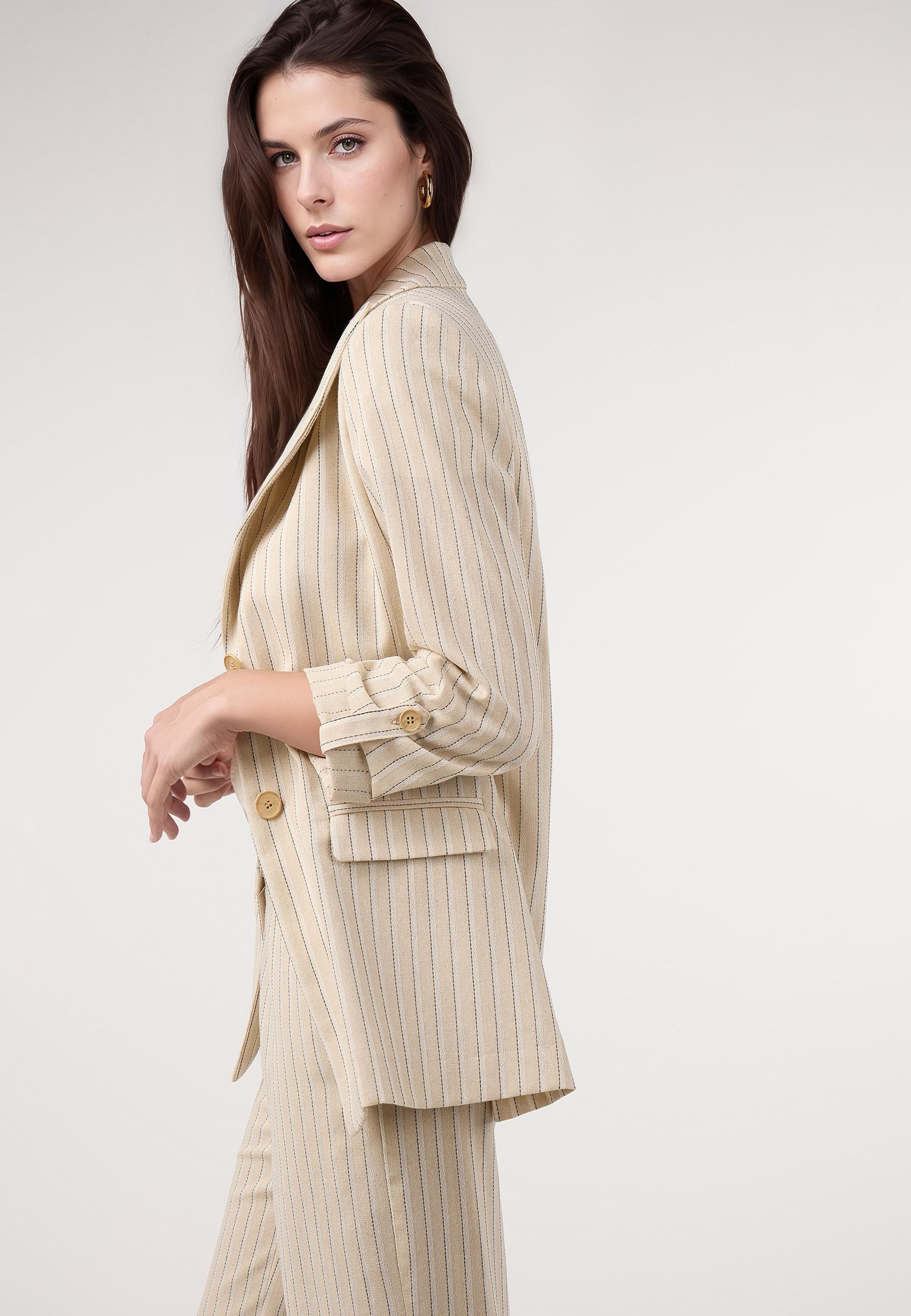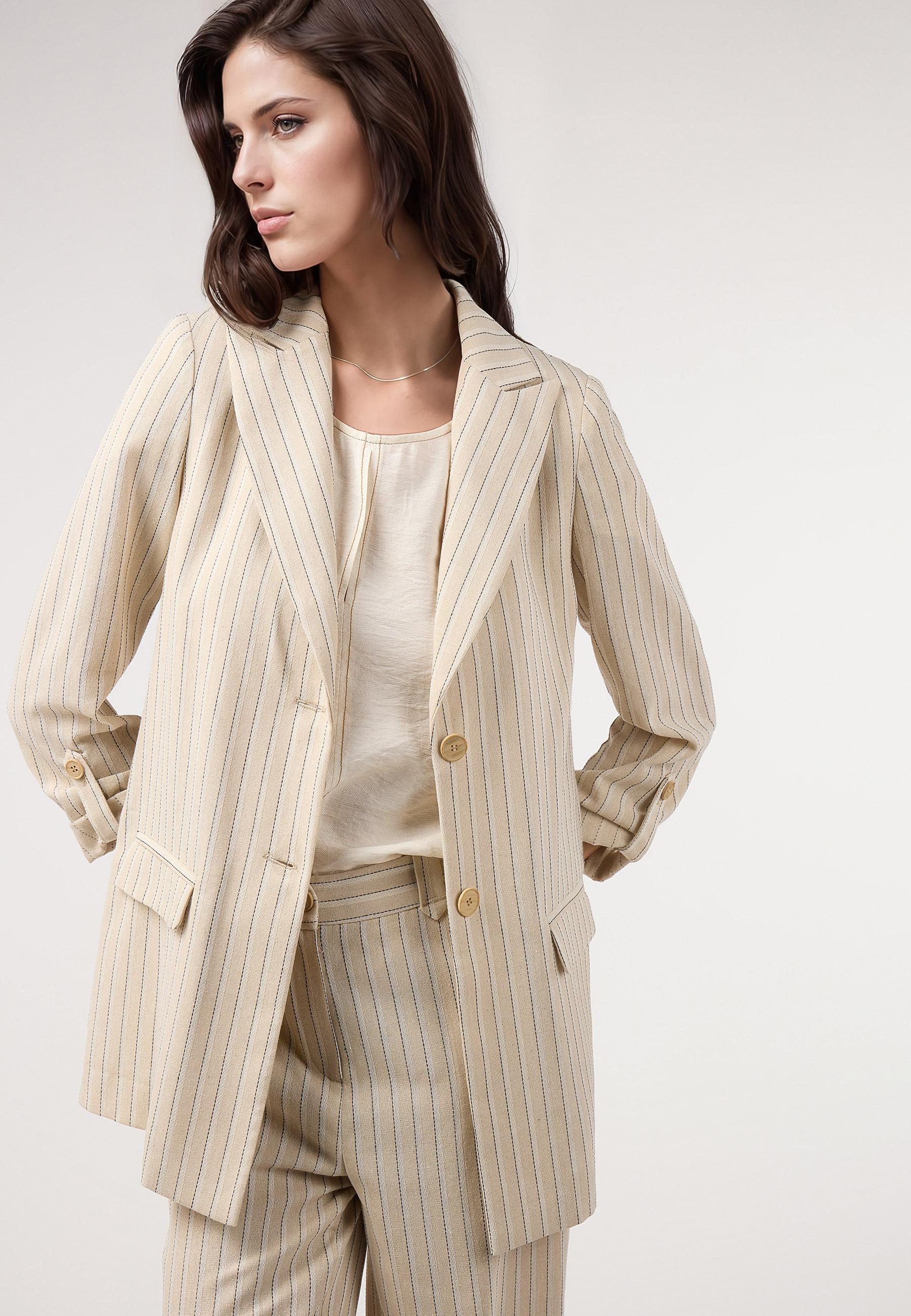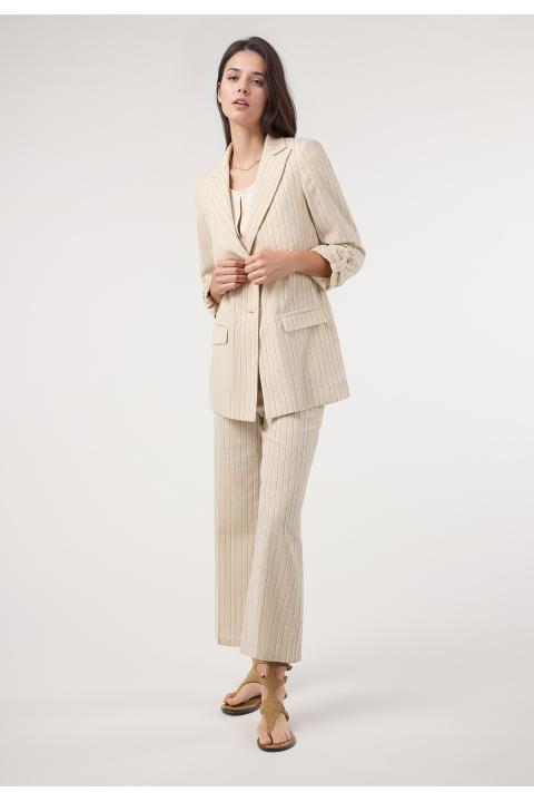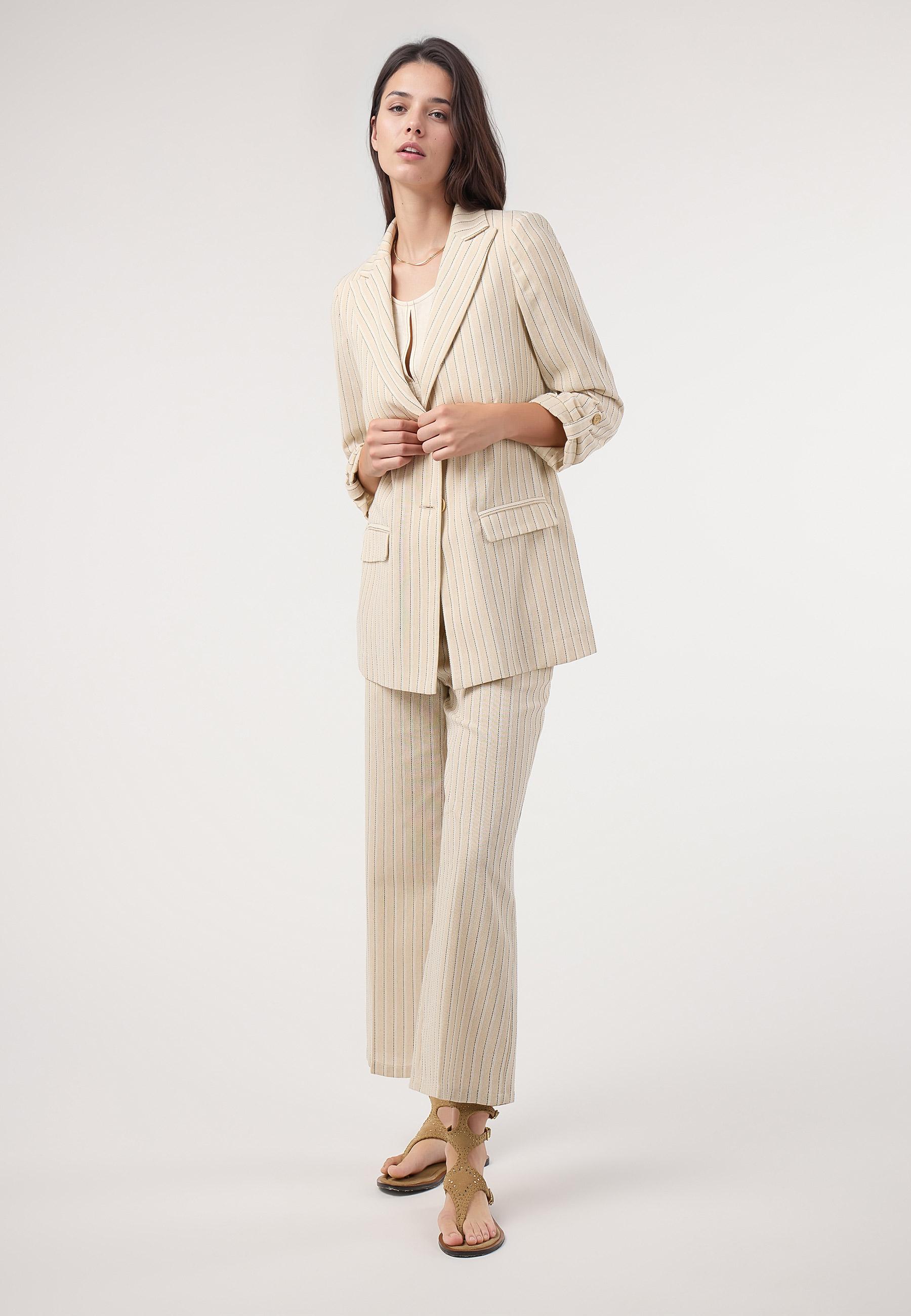 Blazer rayas lino. Traje BEIGE