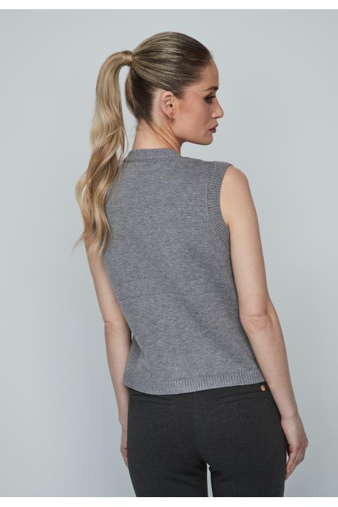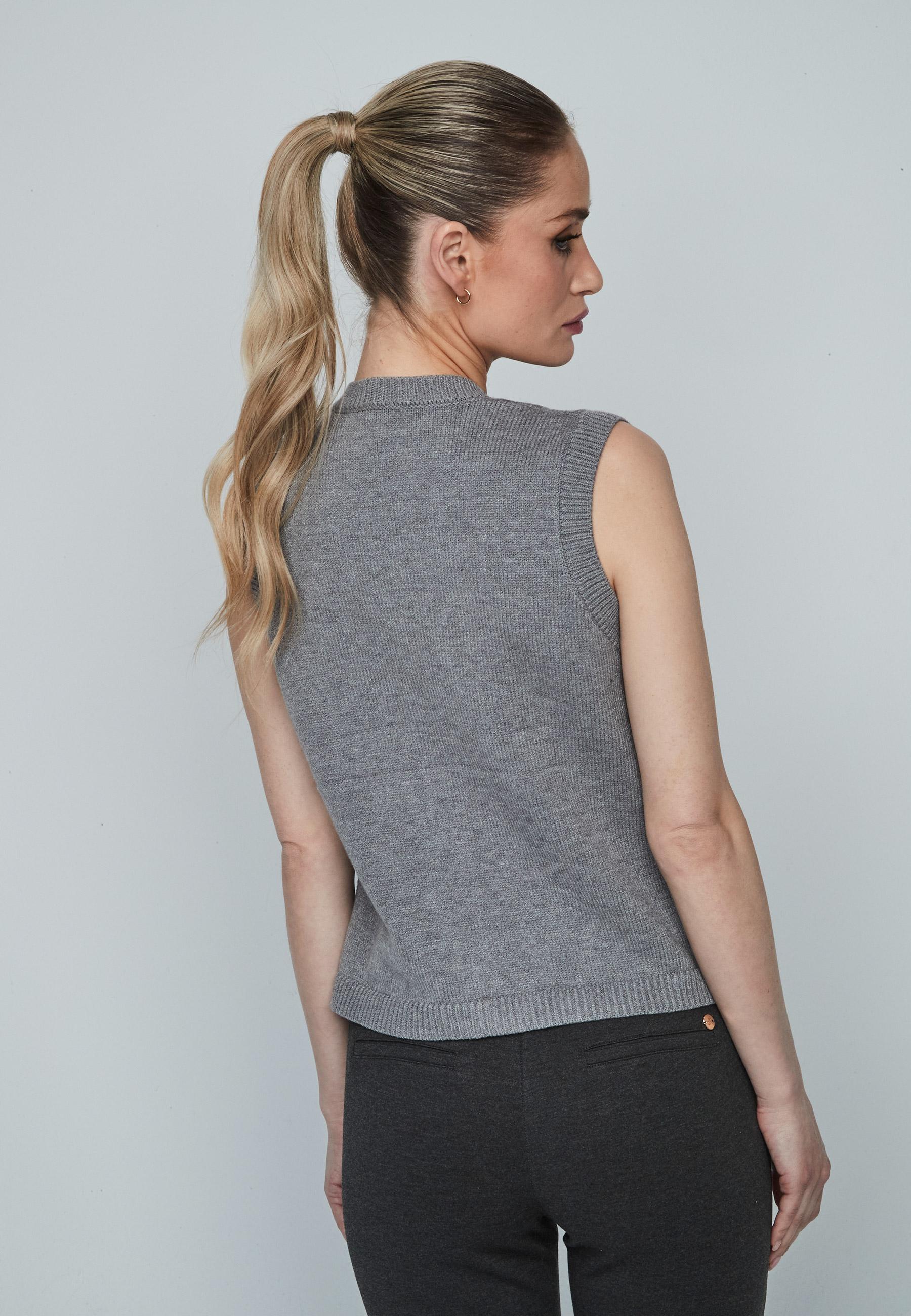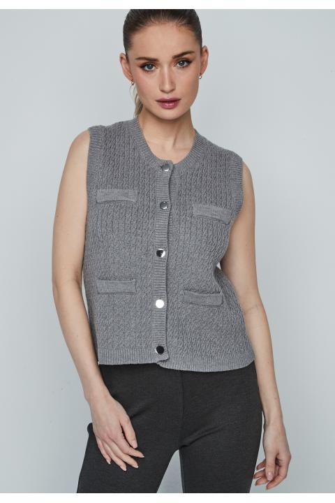 Round neckline braids knitted woman vest buttoned closed