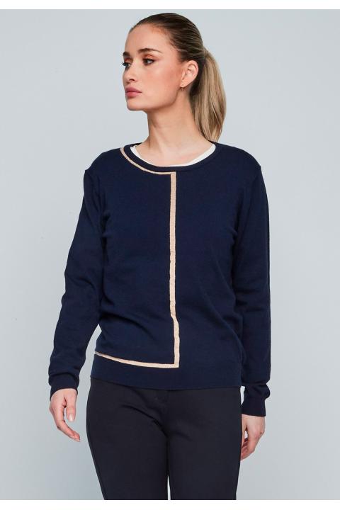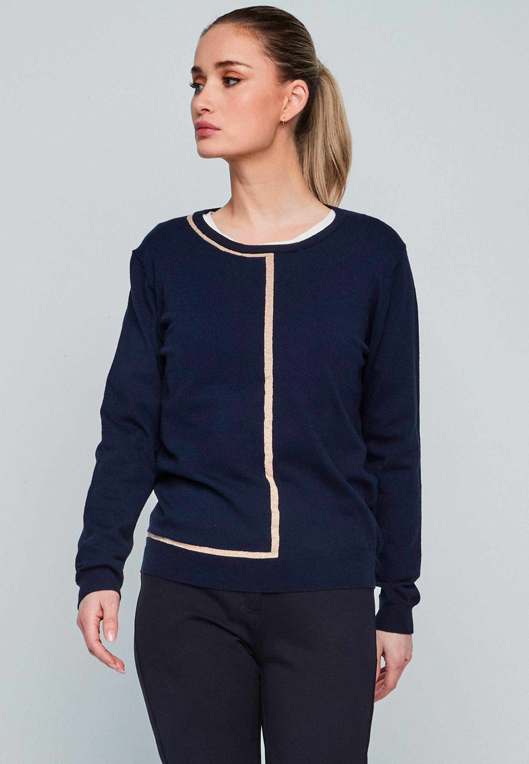 Round neckline woman sweater and contrast with lurex and long sleeve
