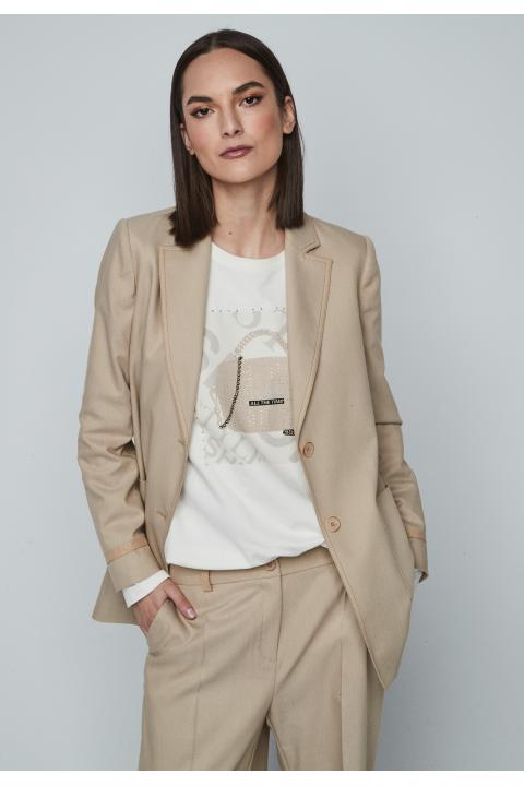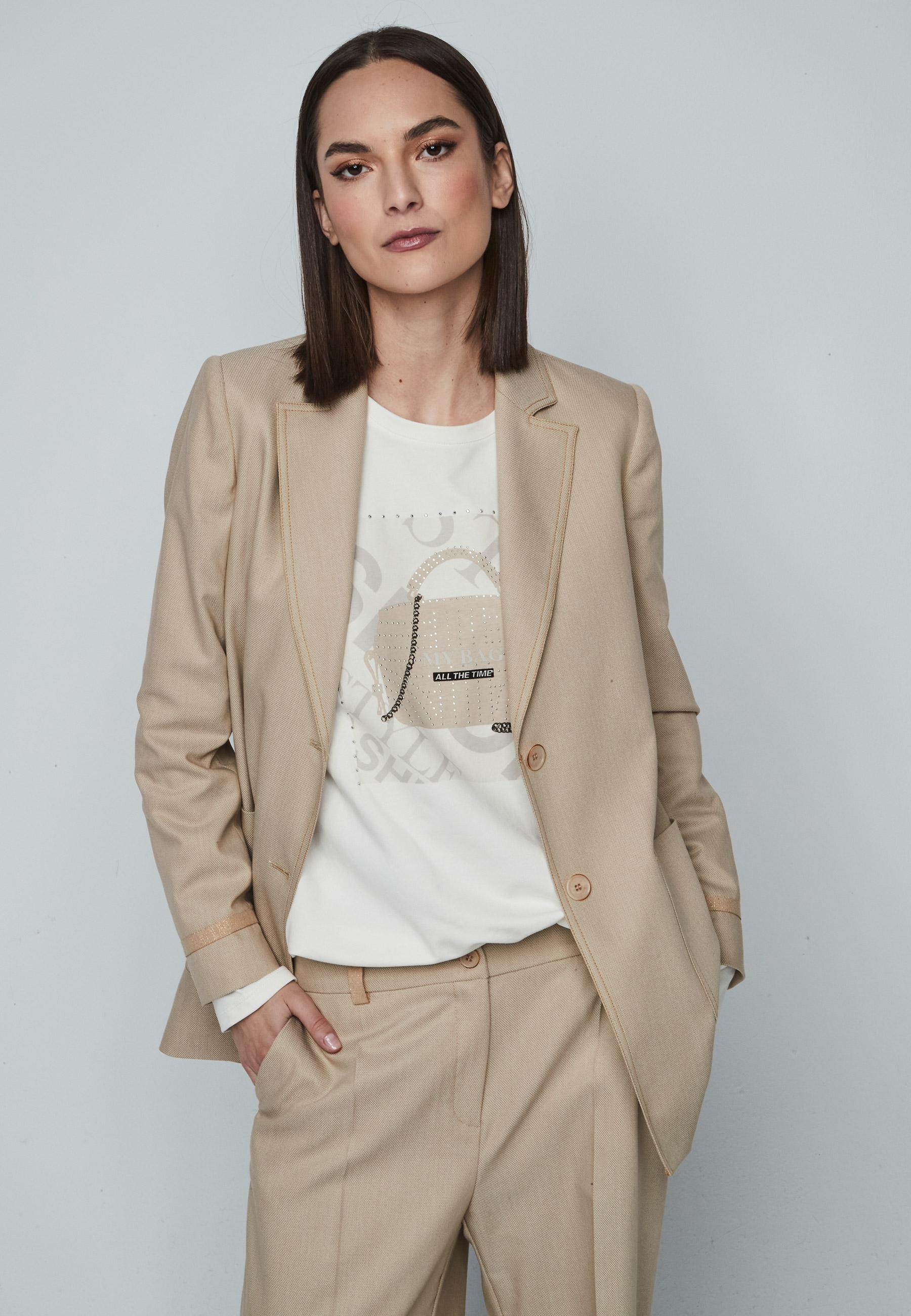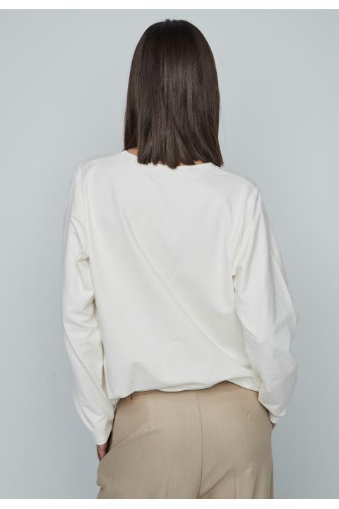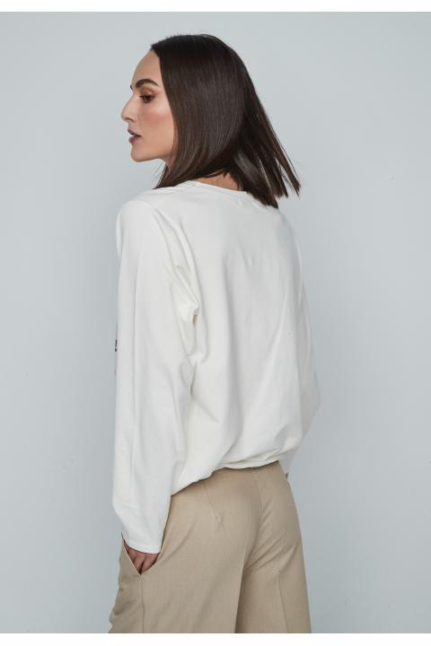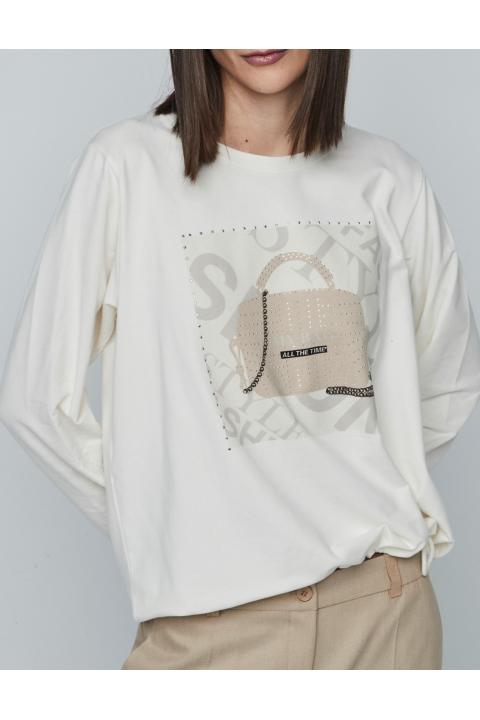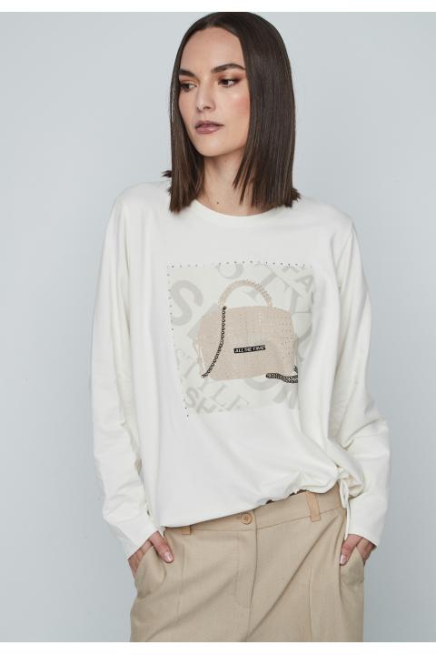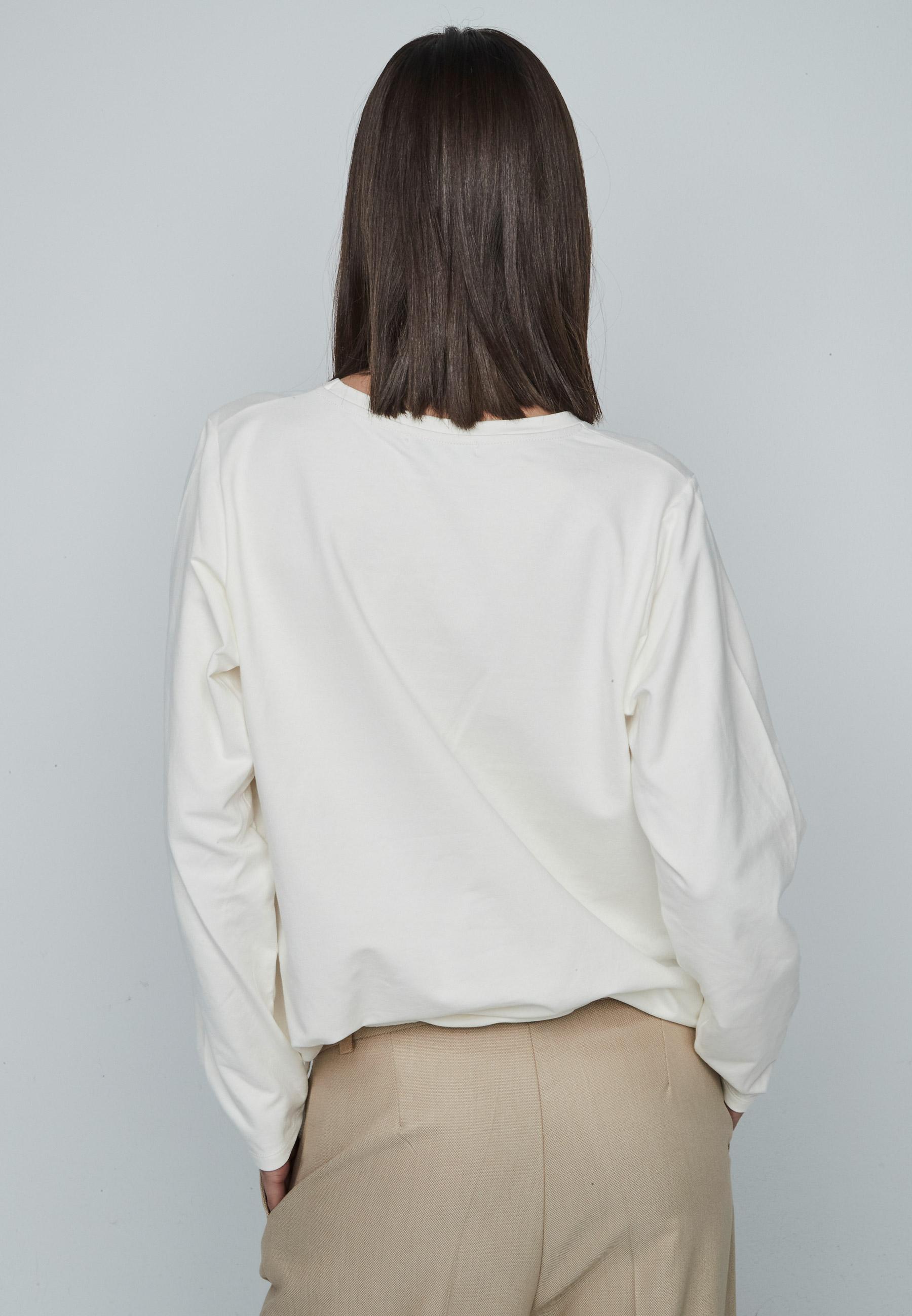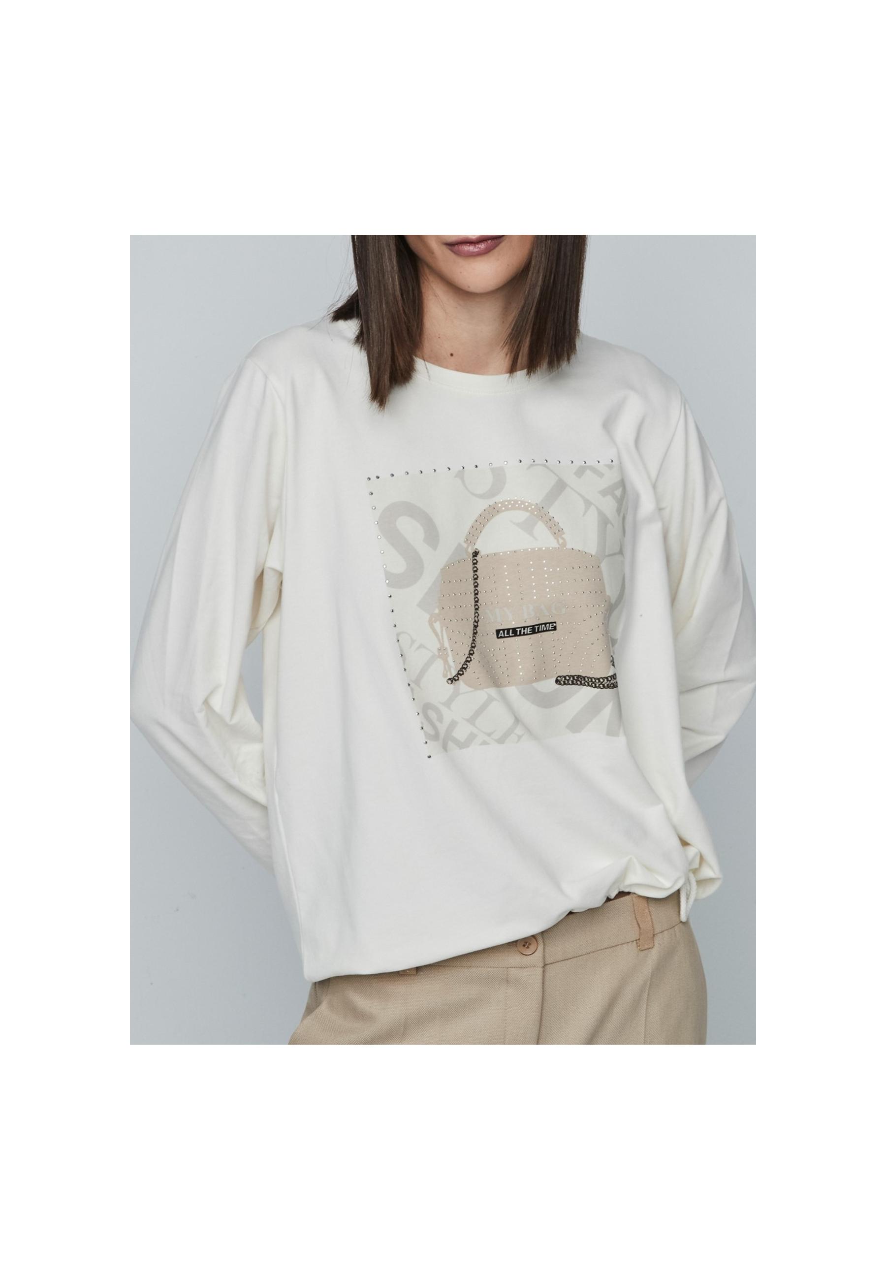 Round neckline woman sweatershirt with print and long sleeve