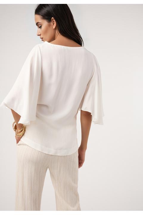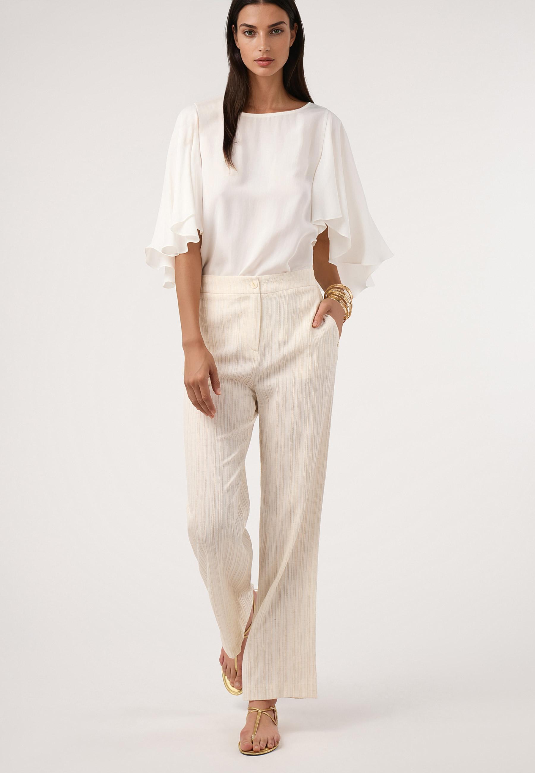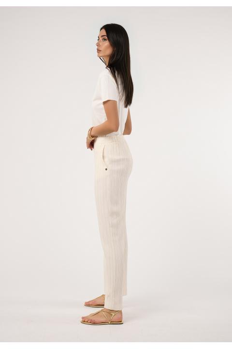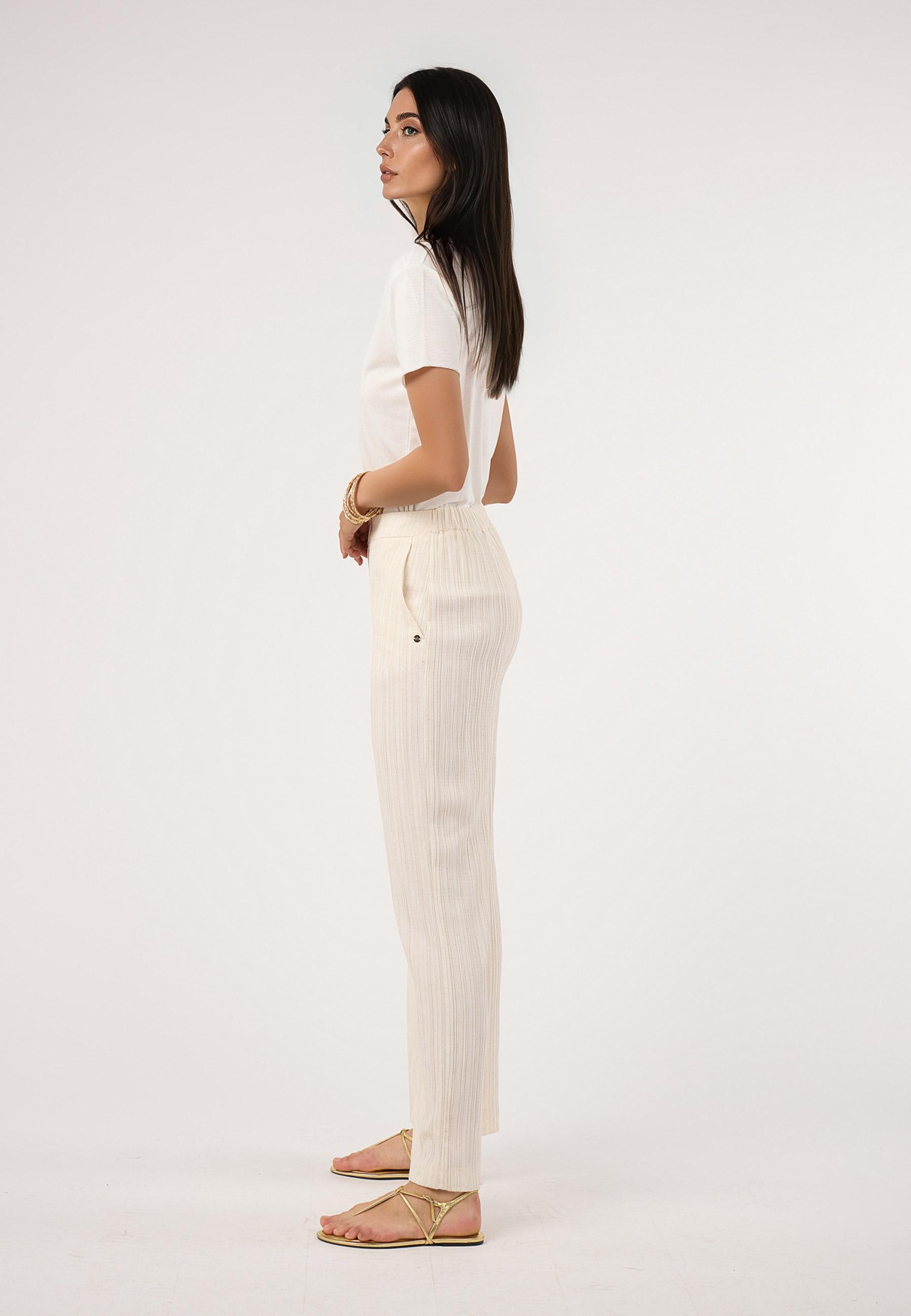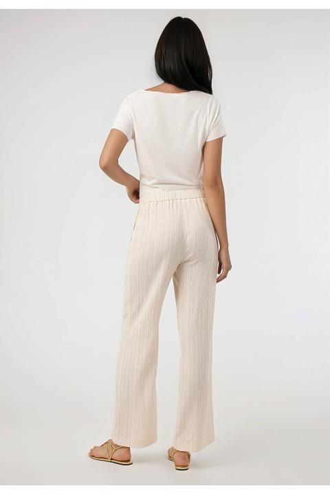 Pantalón fluido falso plisado. Conjunto CRUDO