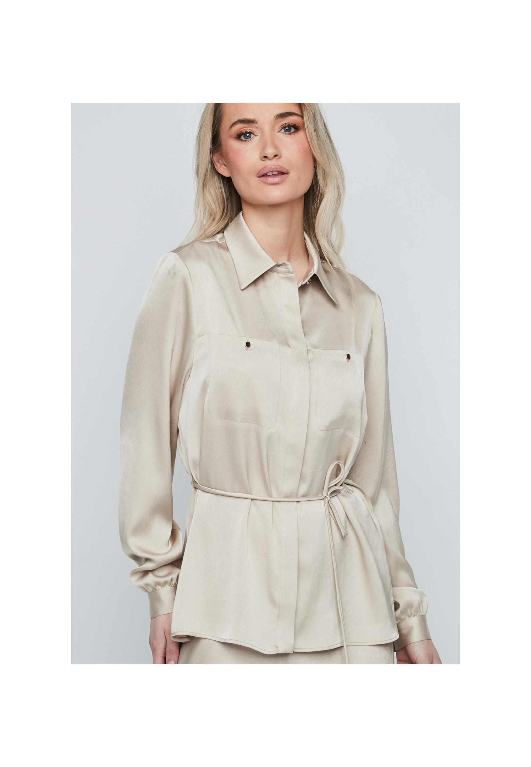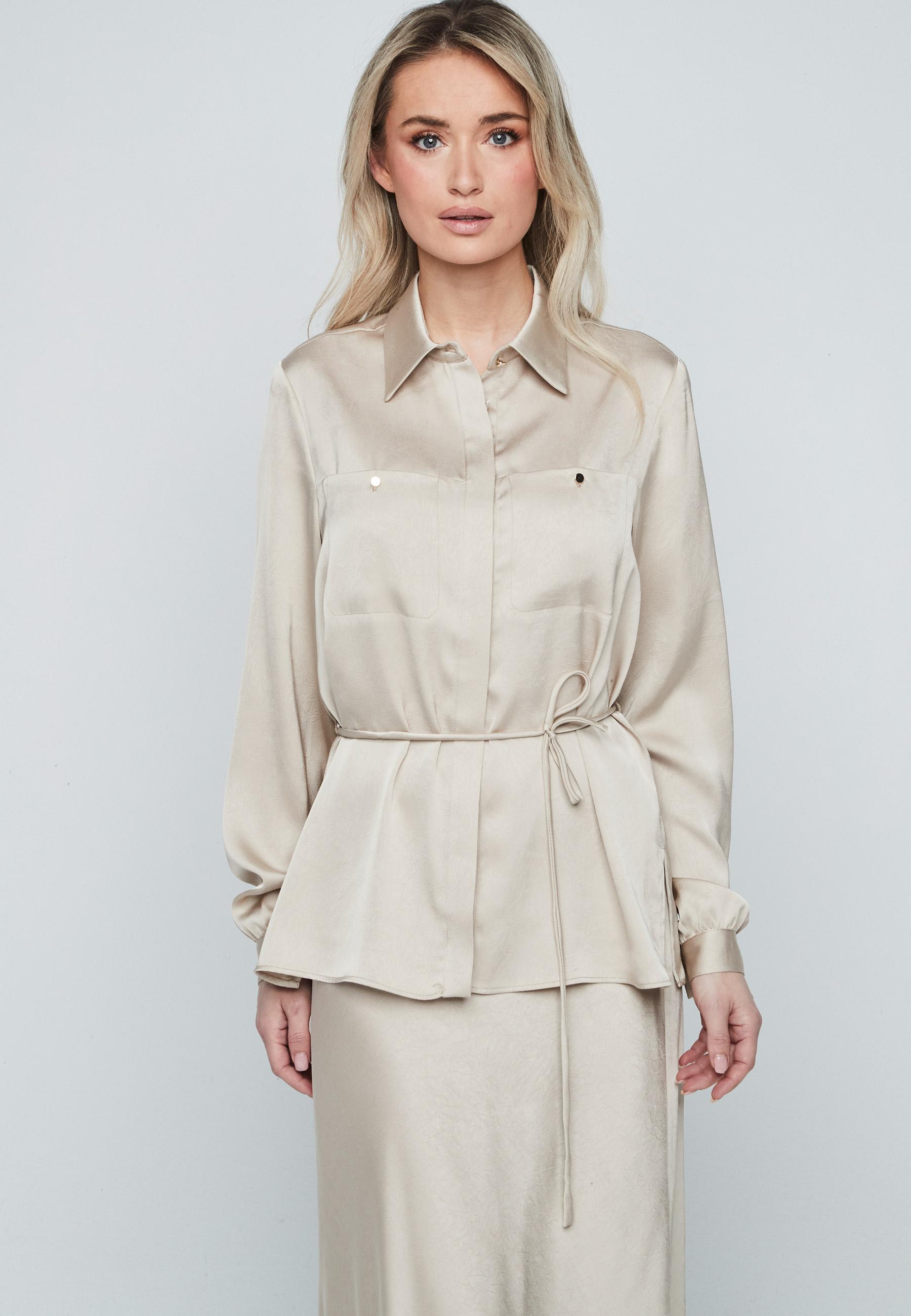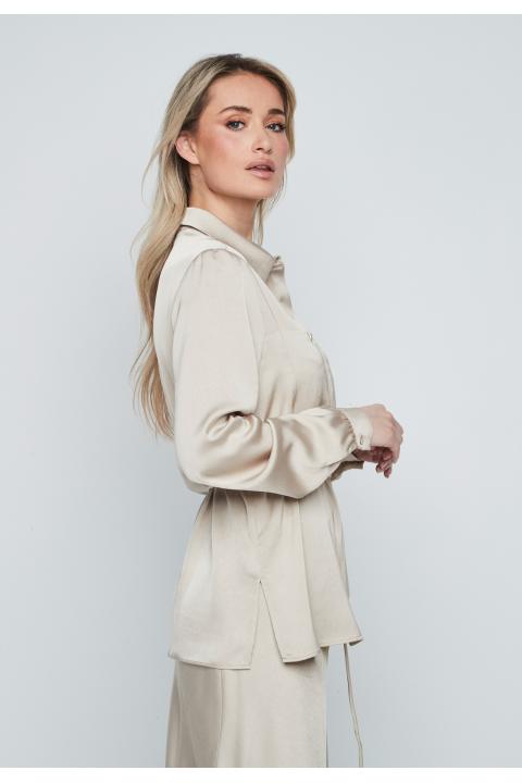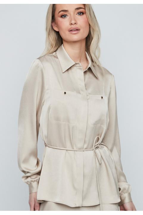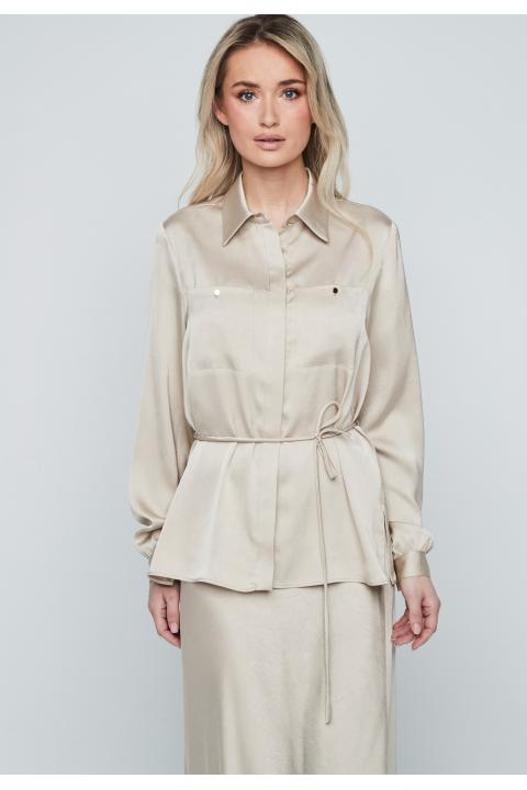 Blusa satén cinturón fino BEIGE
