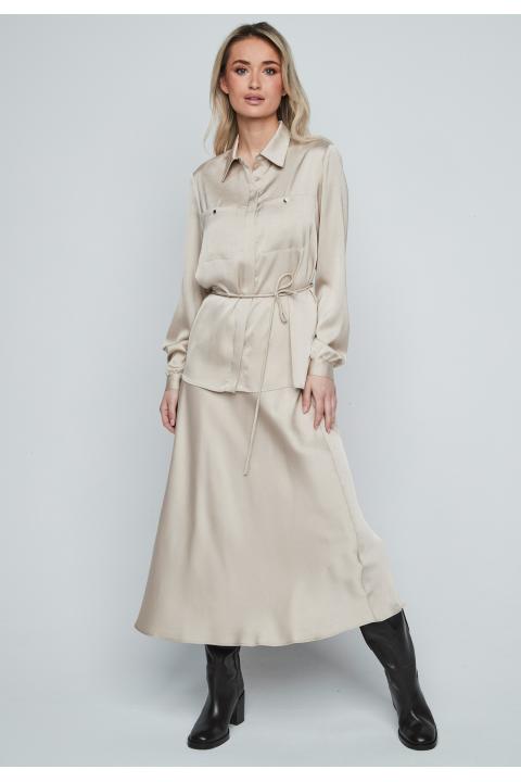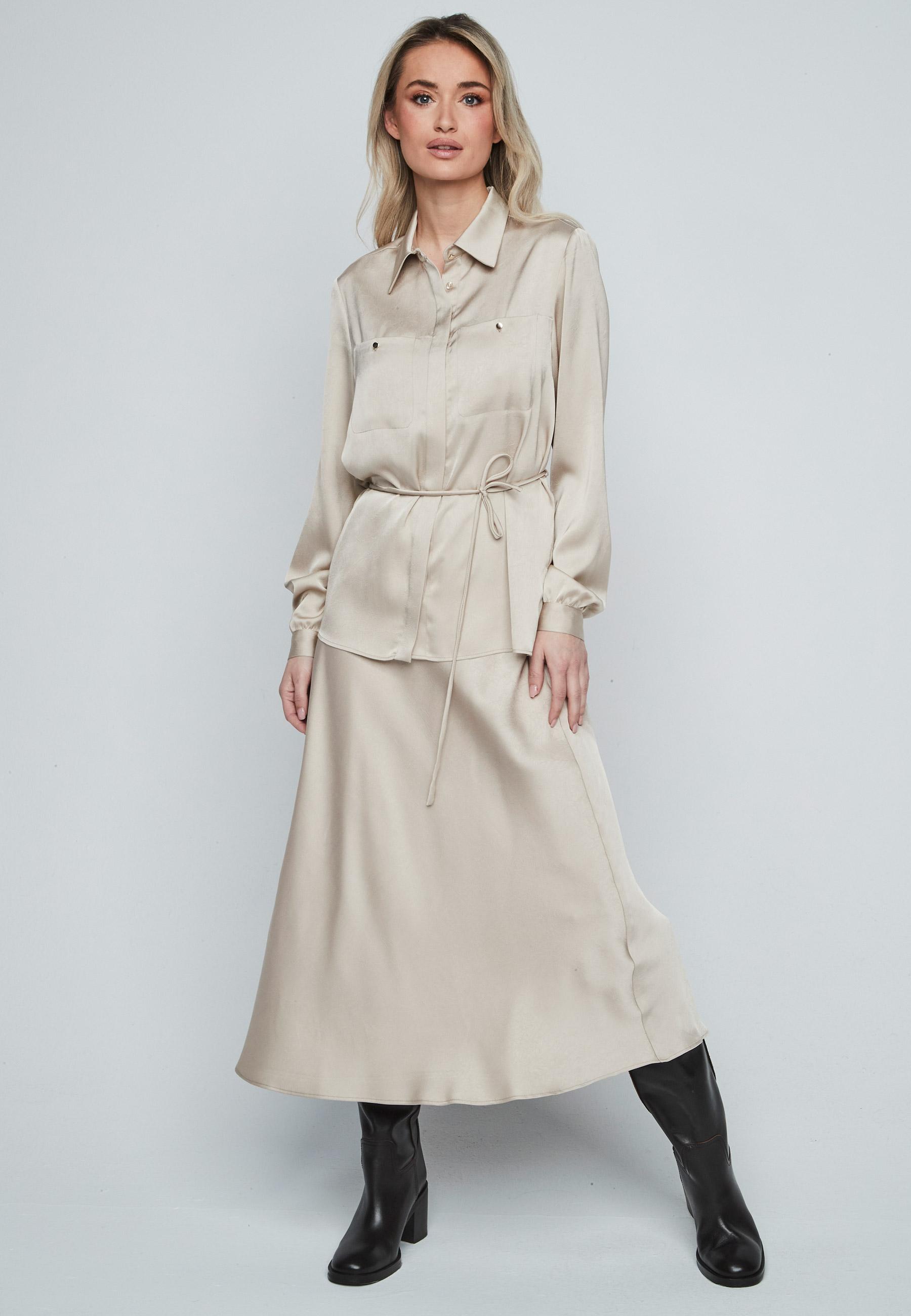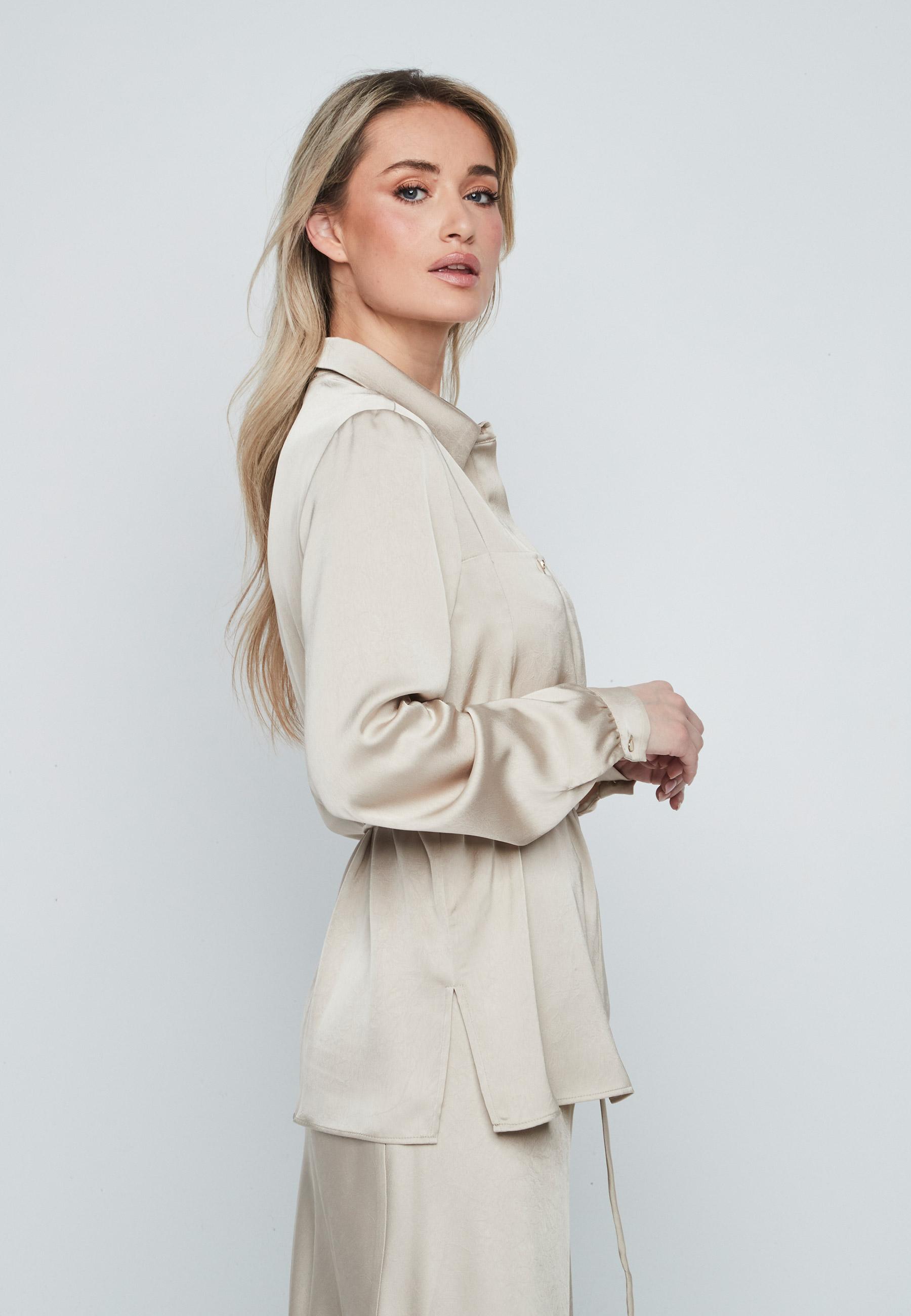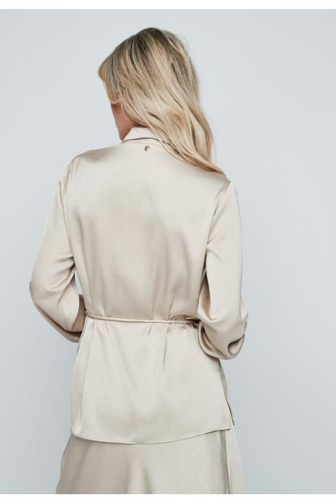 Blusa satén cinturón fino BEIGE
