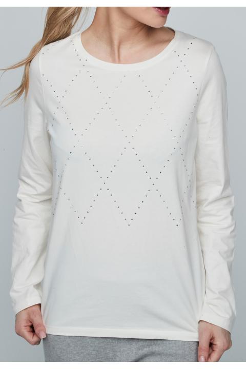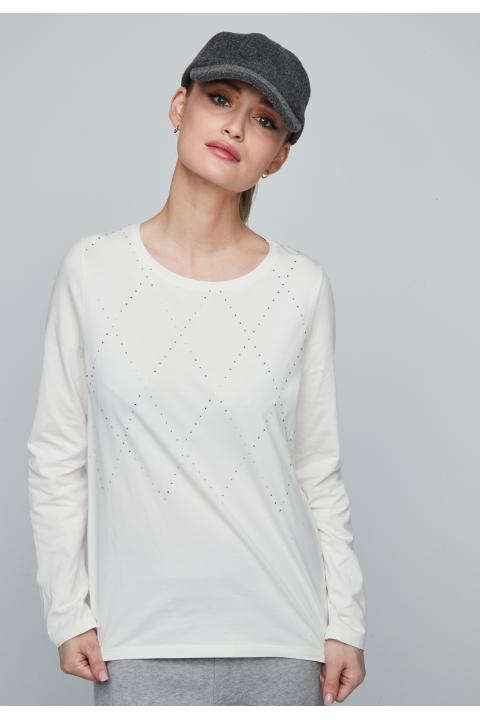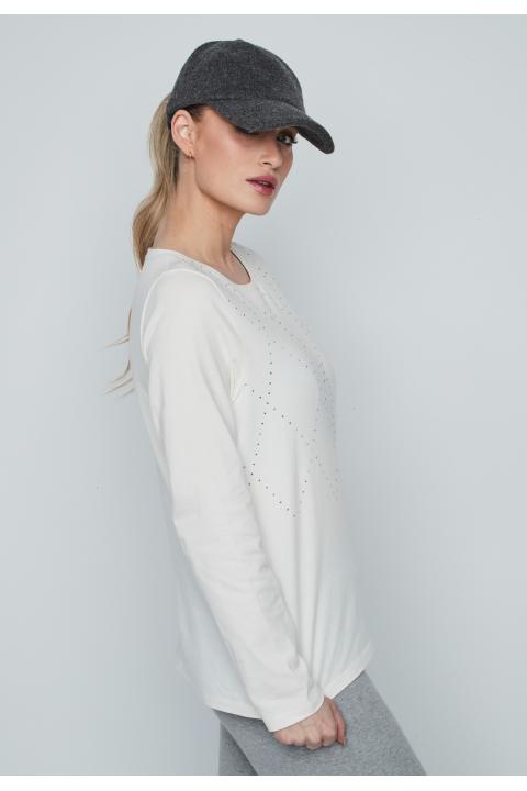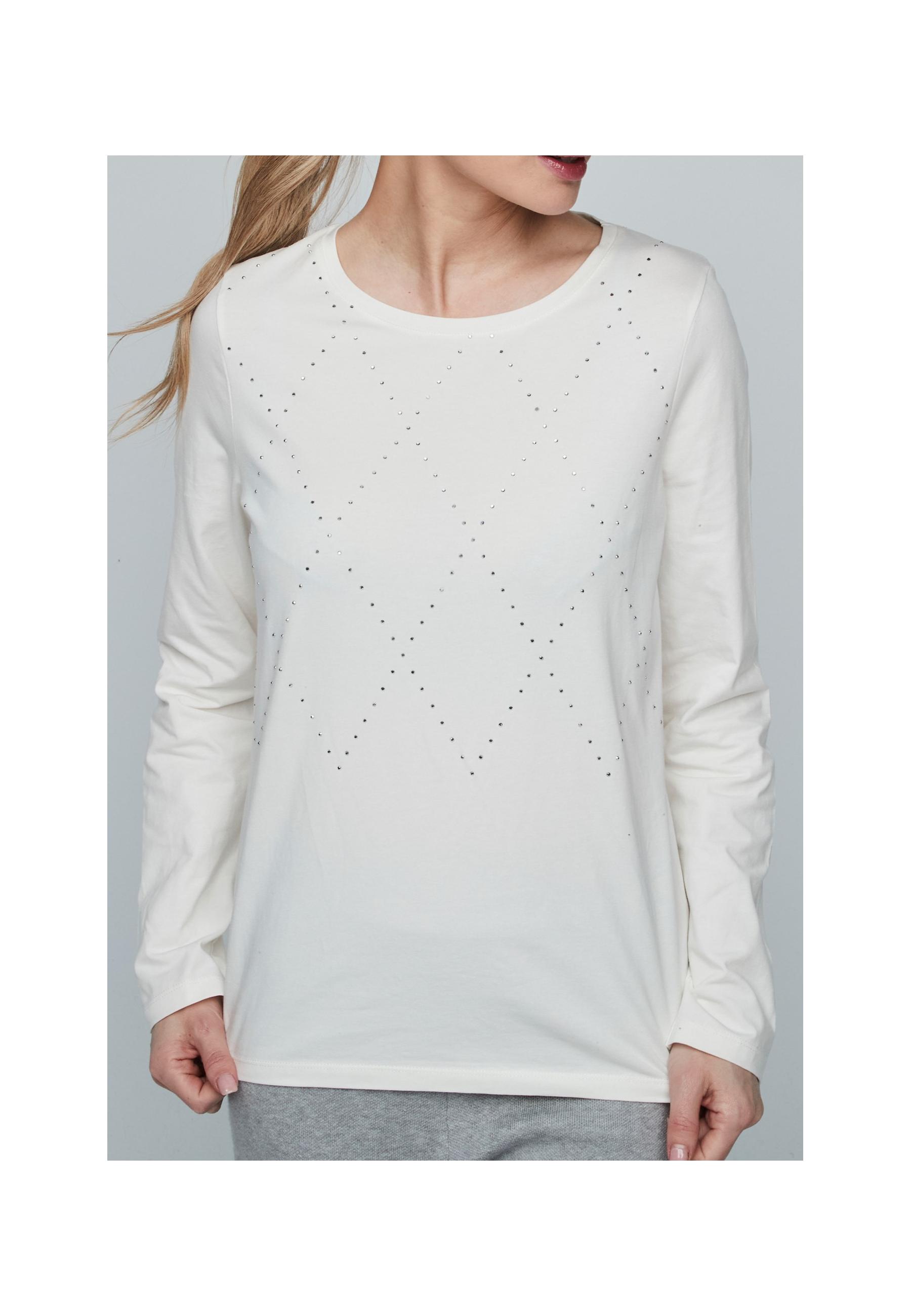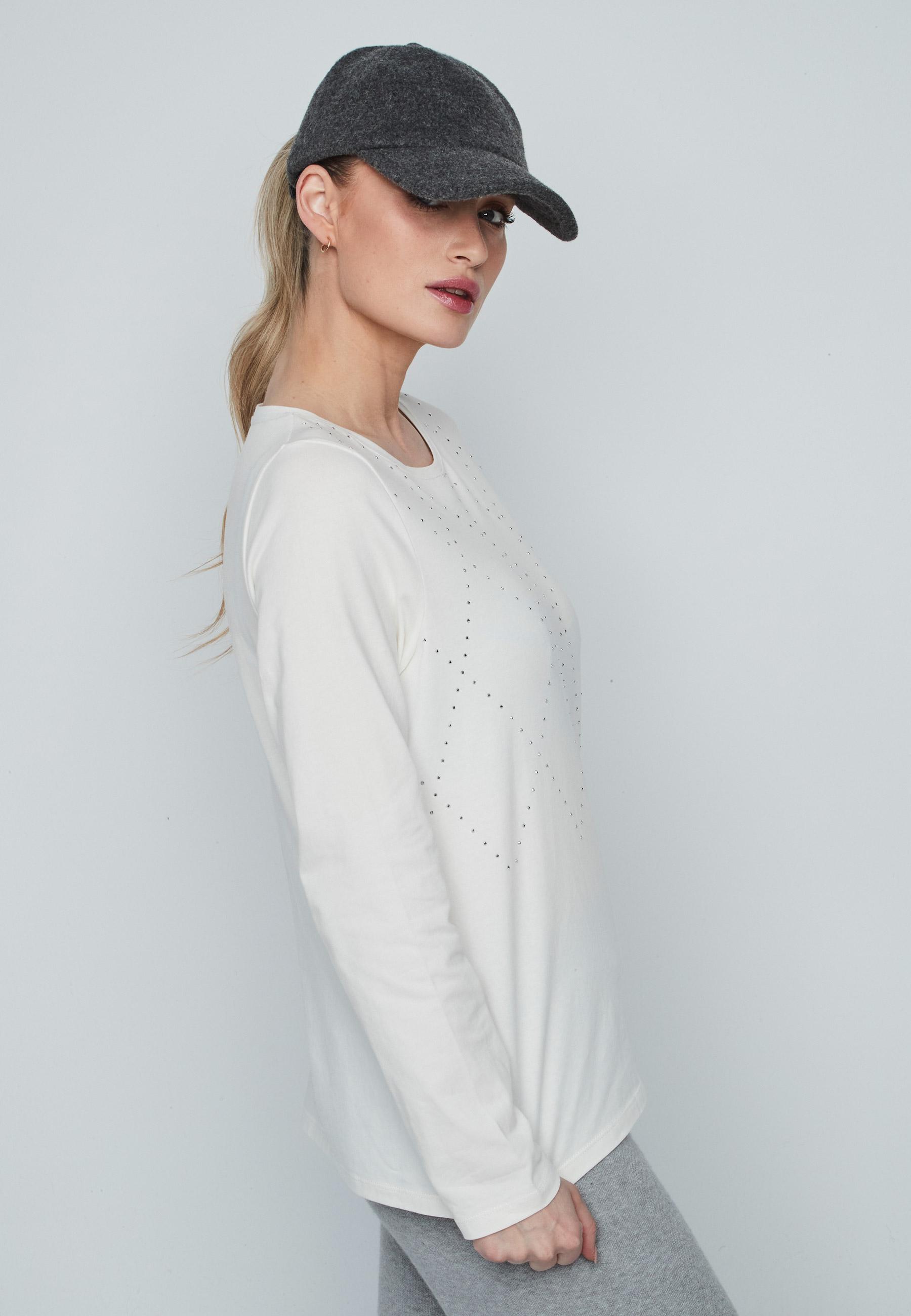 Camiseta de mujer de cuello redondo con lentejuelas y manga larga