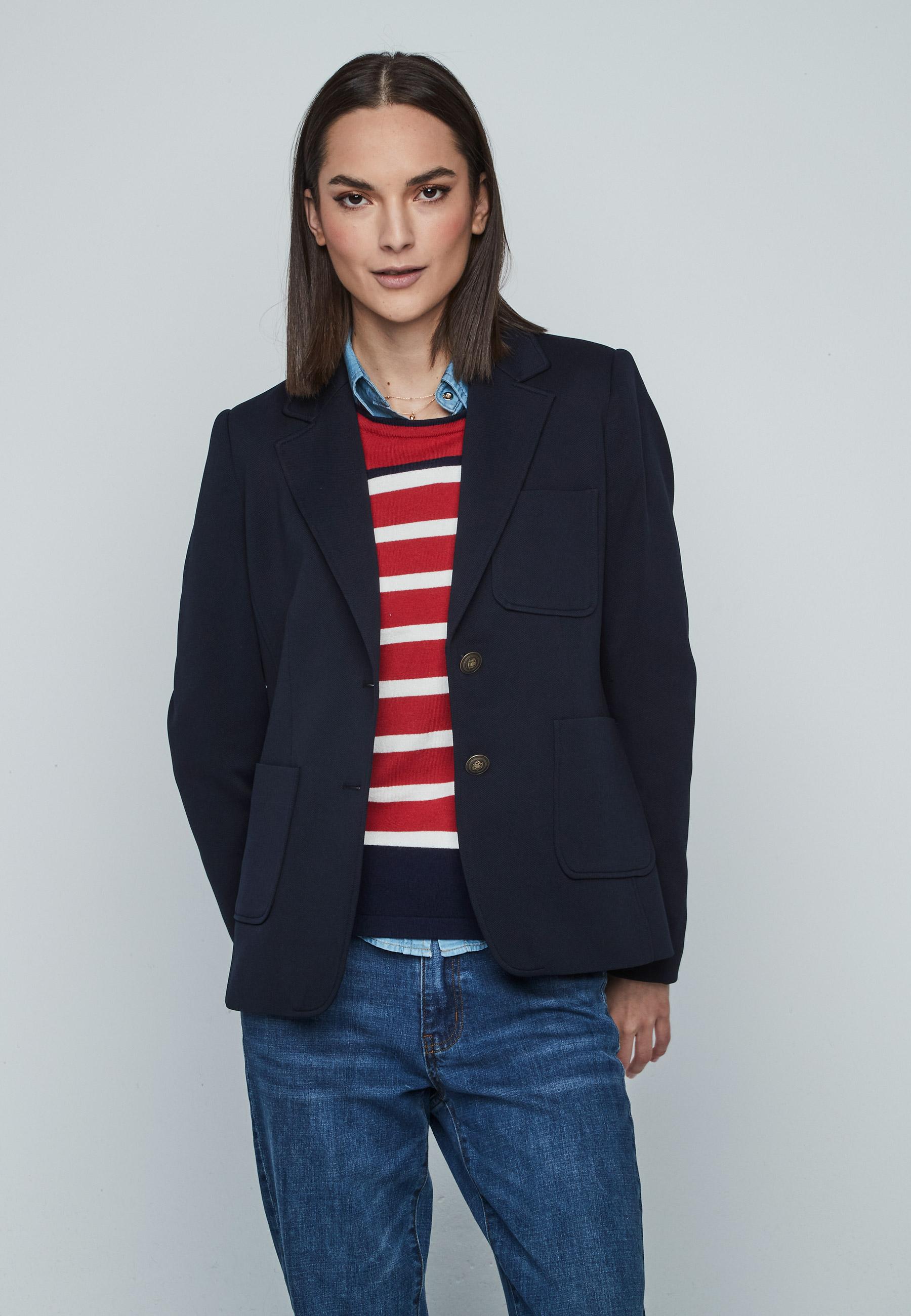 blazier básica piqué. bolsillos plastón AZUL MARINO