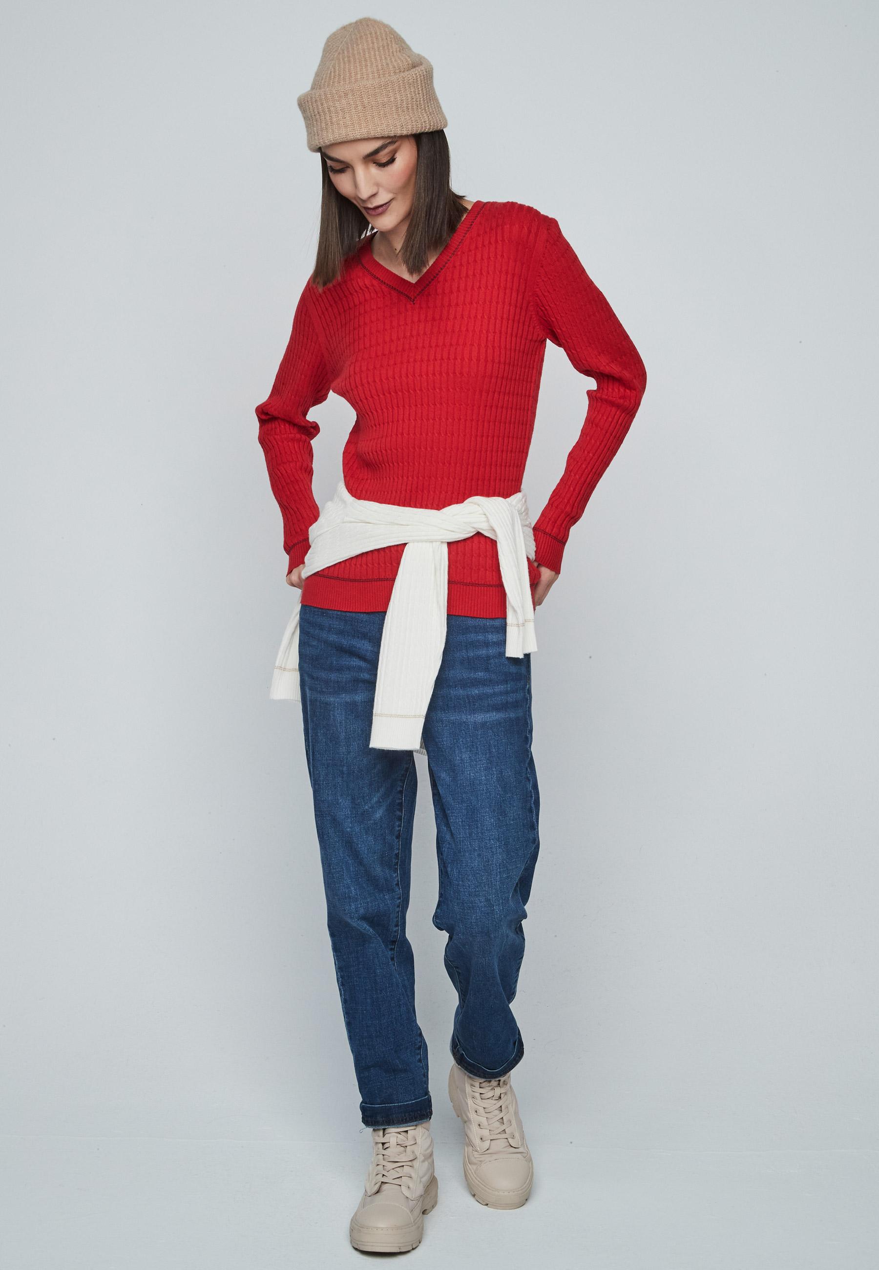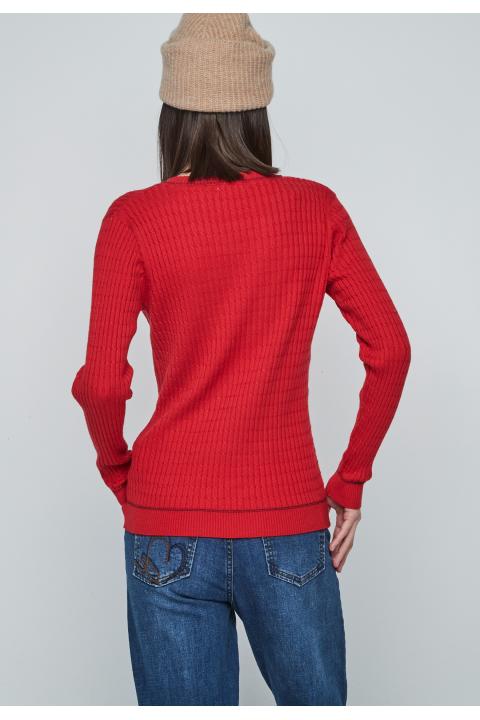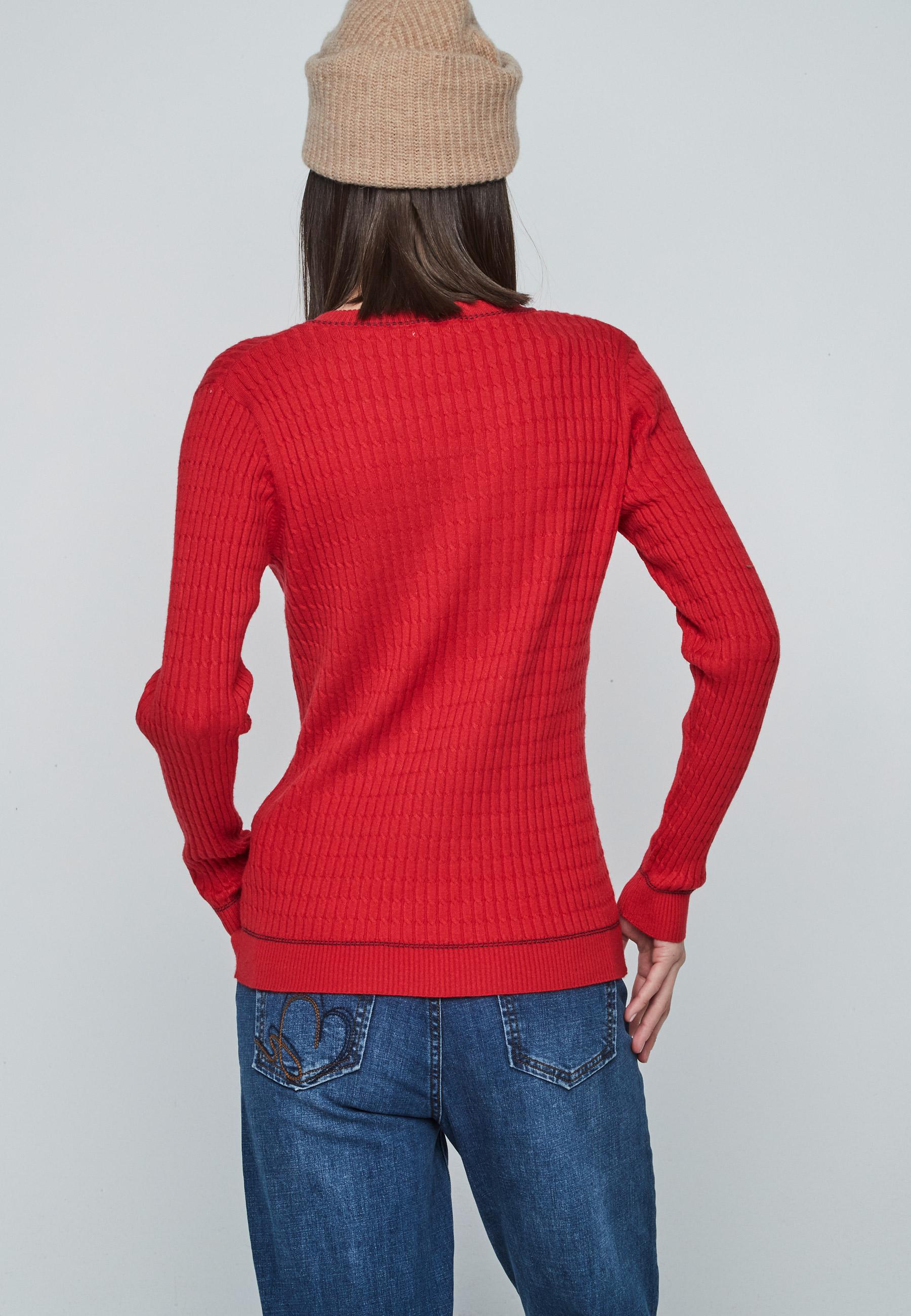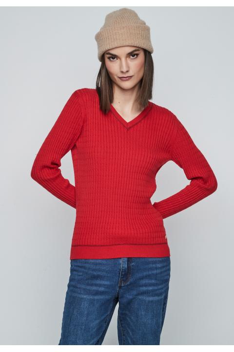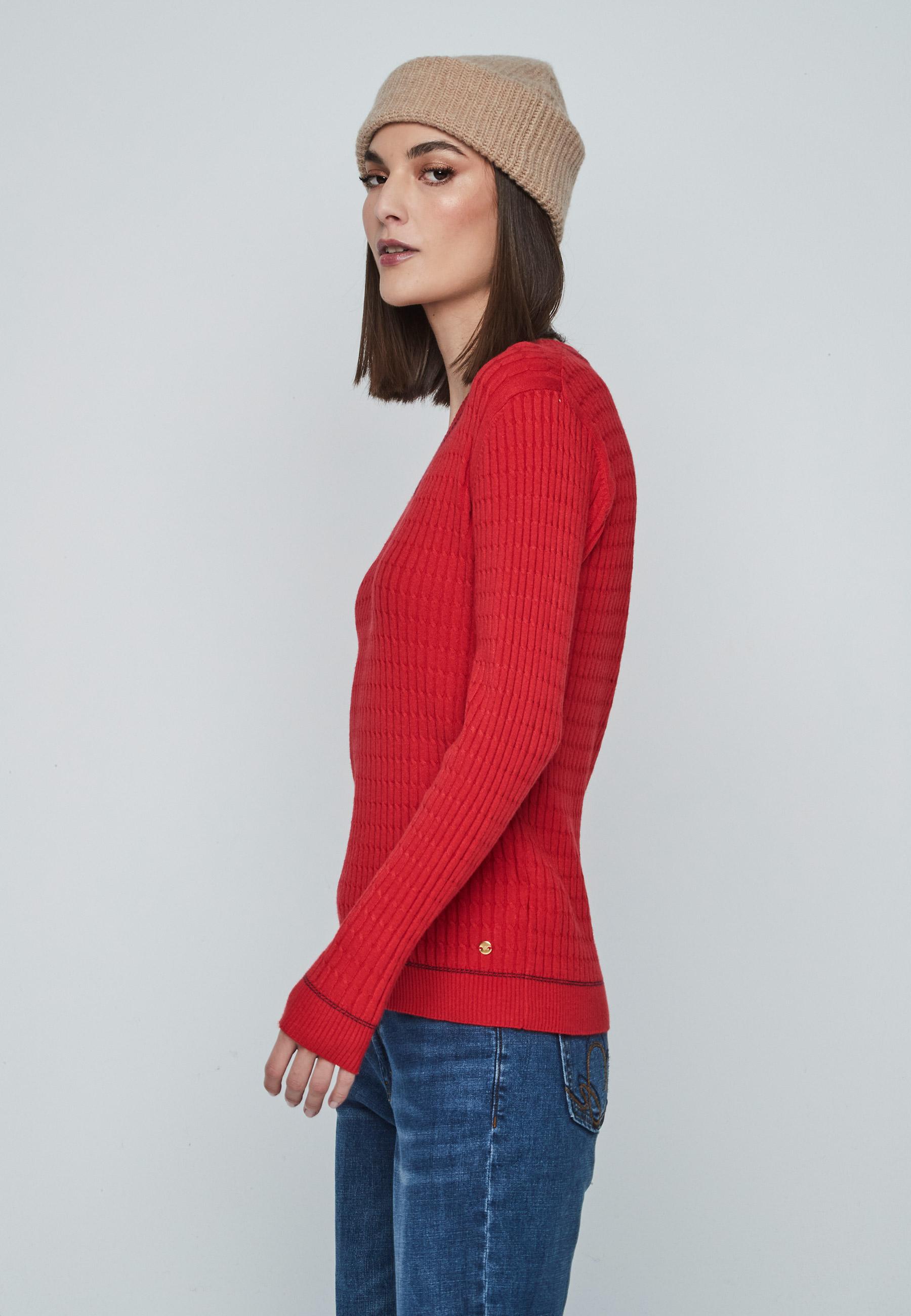 Jersey de mujer con cuello pico con ochos y detalle de efecto costura con manga larga
