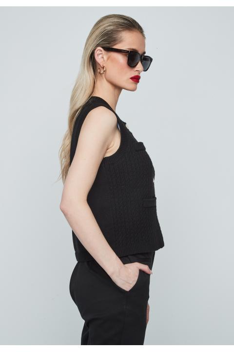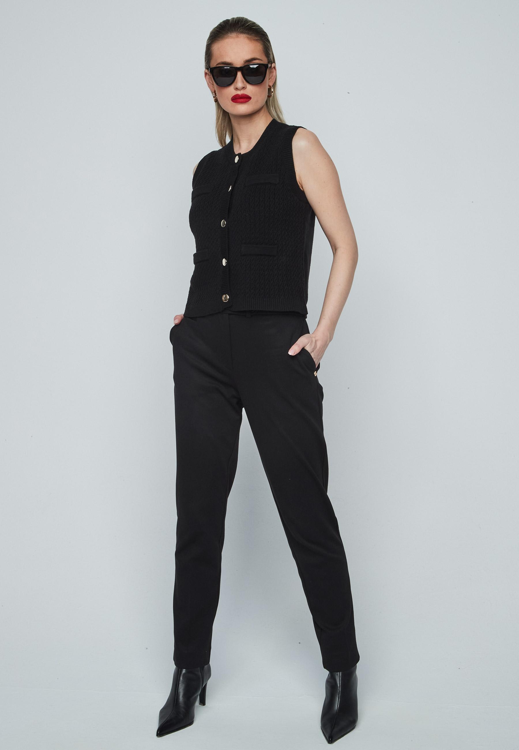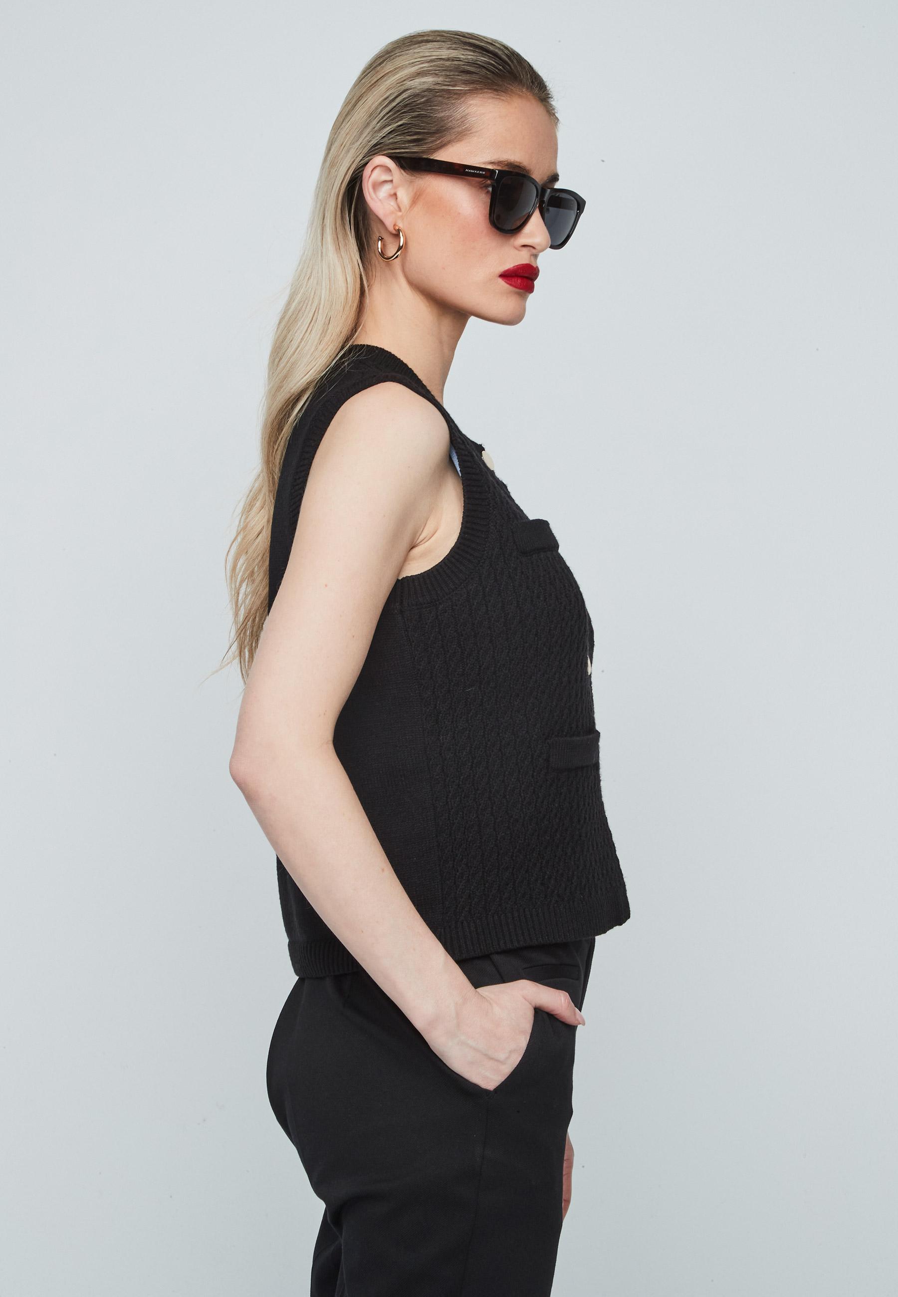 Chaleco de punto ochos de mujer con cuello redondo cierre de botones