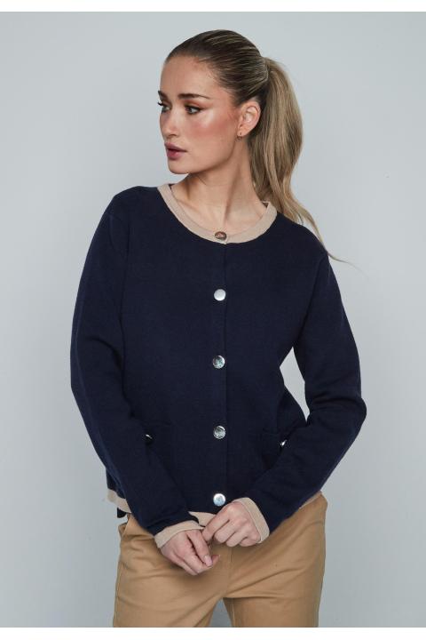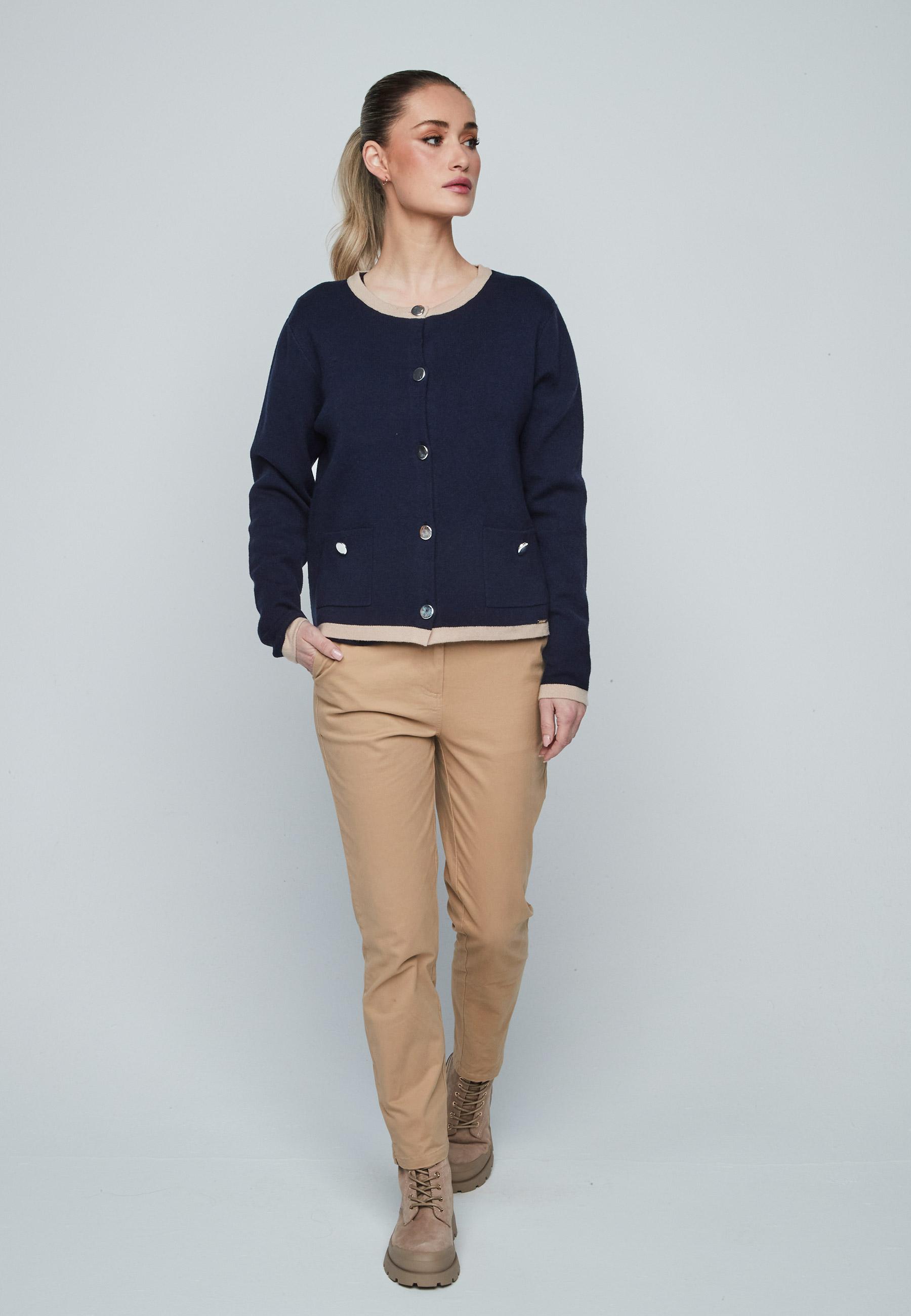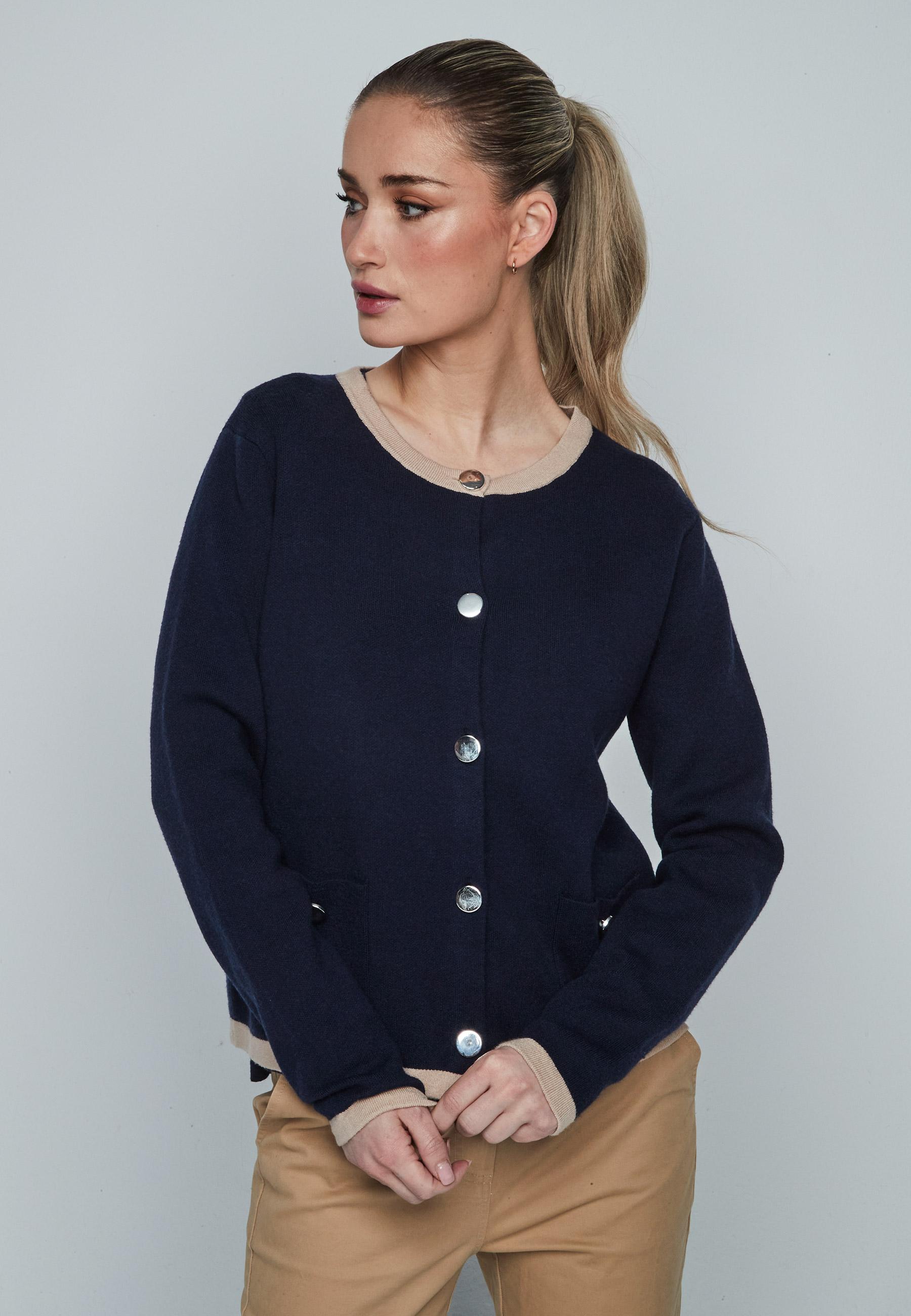 Chaqueta de punto de mujer cuello redondo con cierre de botones y manga larga