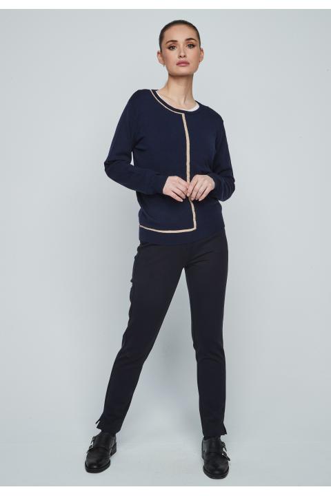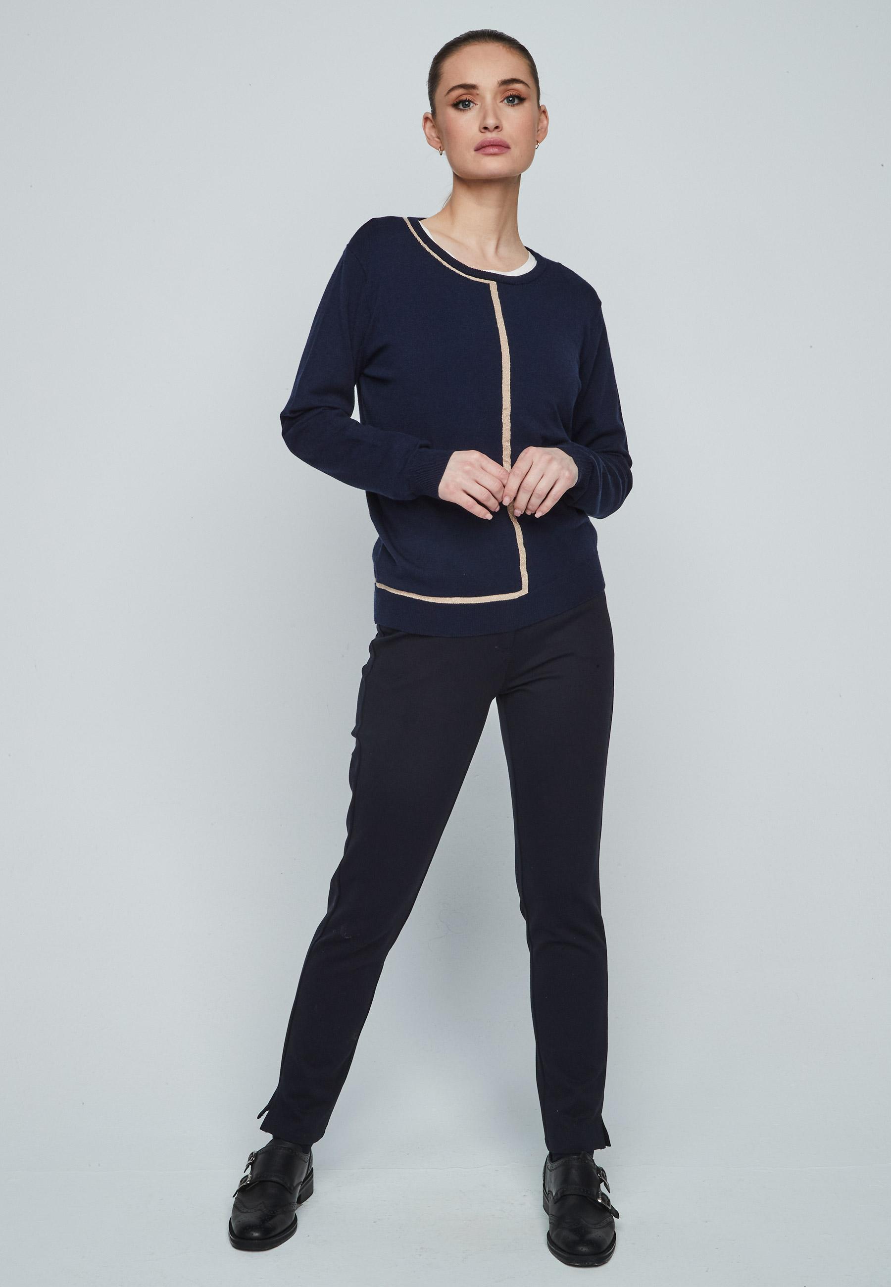 Jersey de mujer cuello redondo con detalle de contraste con lurex y manga larga
