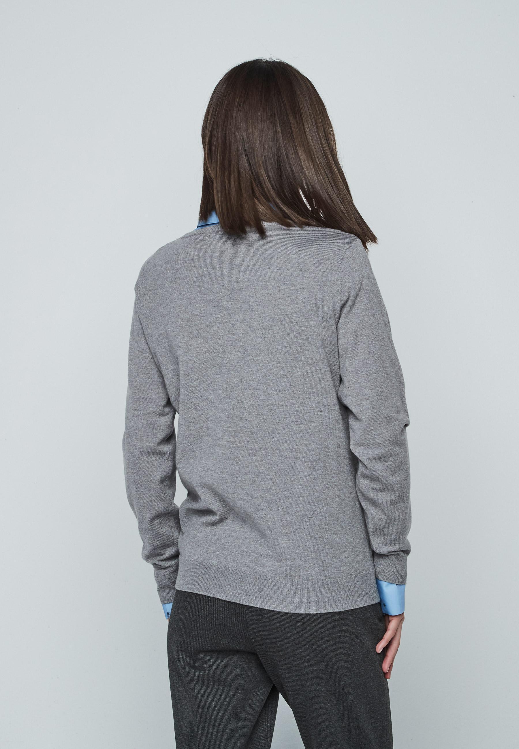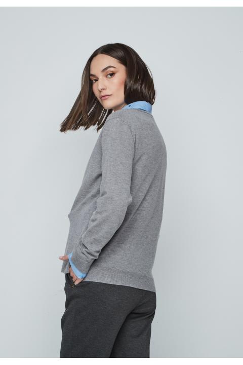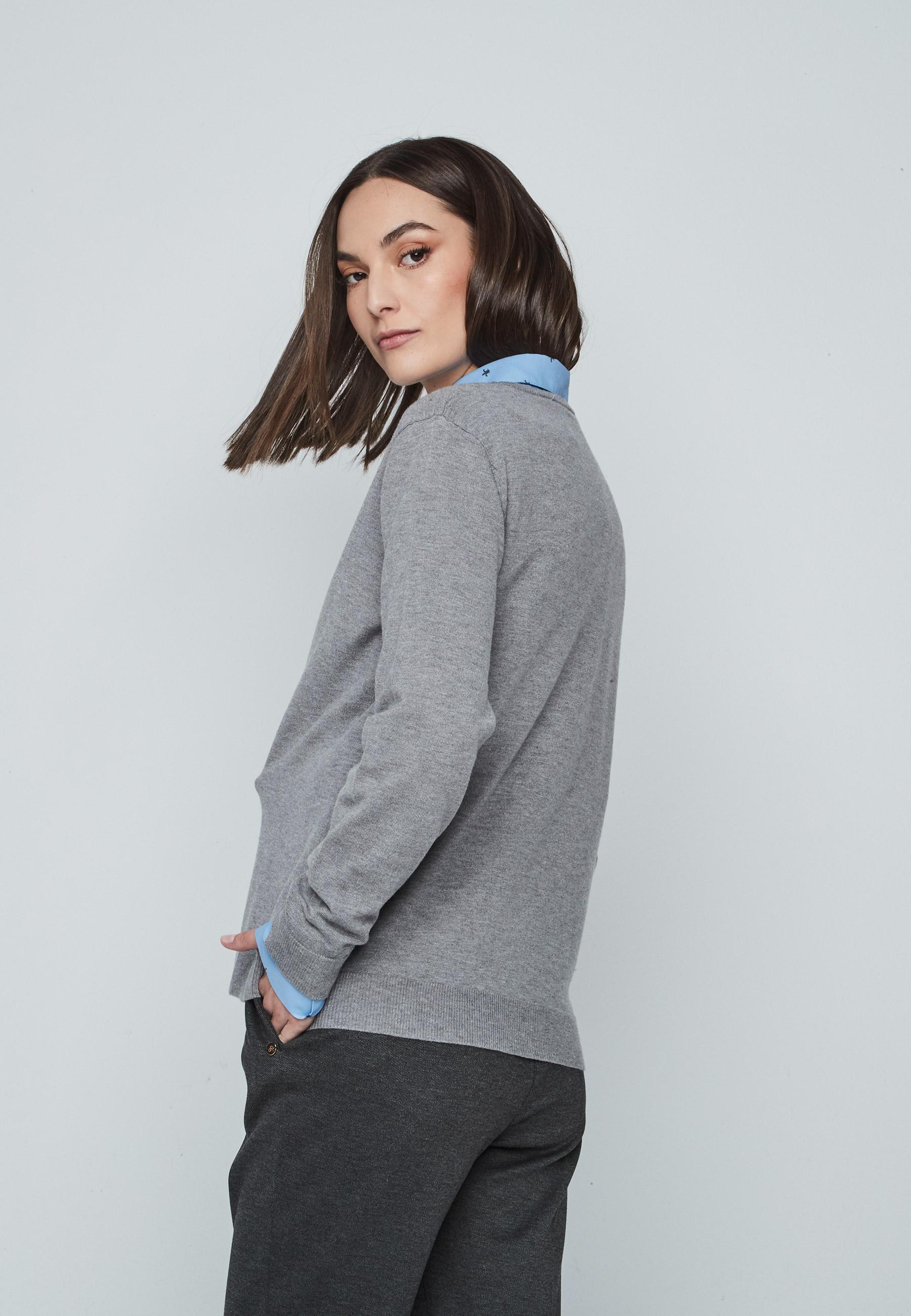 Jersey de mujer cuello redondo con detalle de contraste con lurex y manga larga
