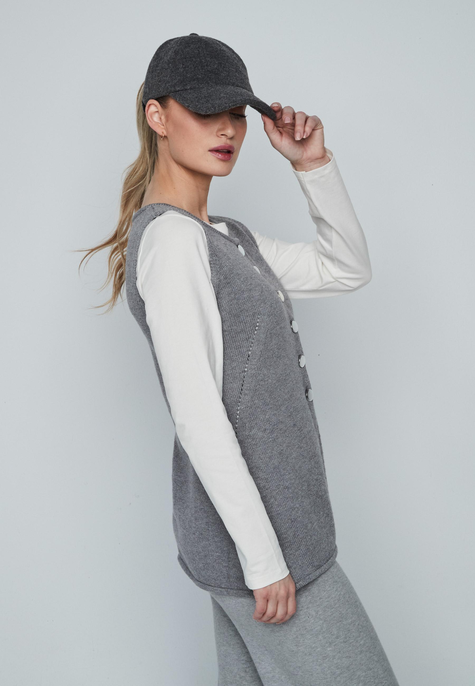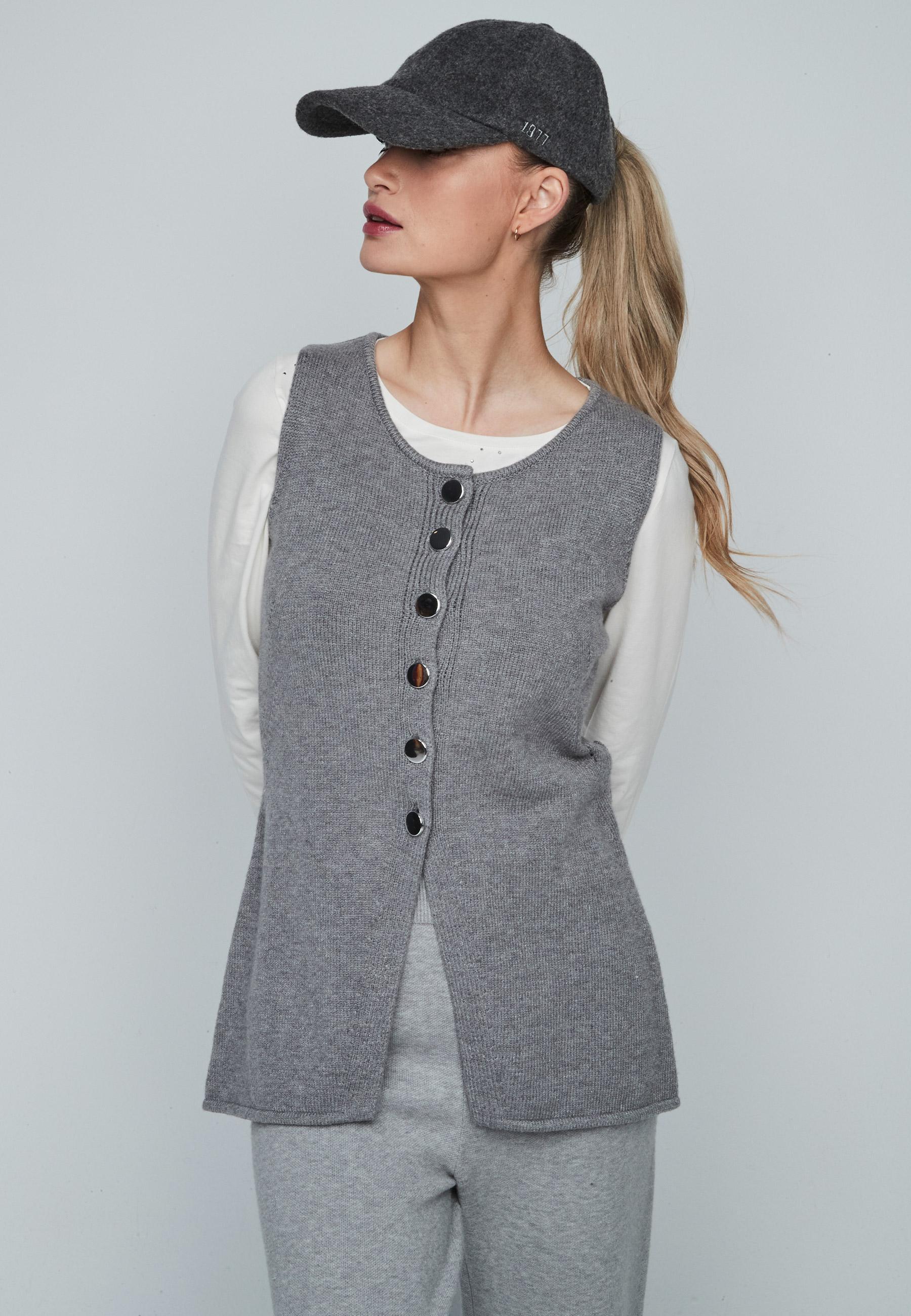 Chaleco de punto de mujer con cuello redondo cierre de botones