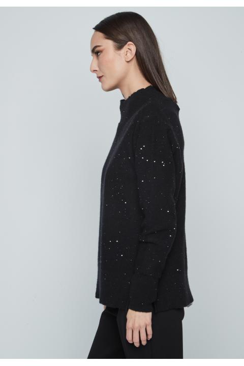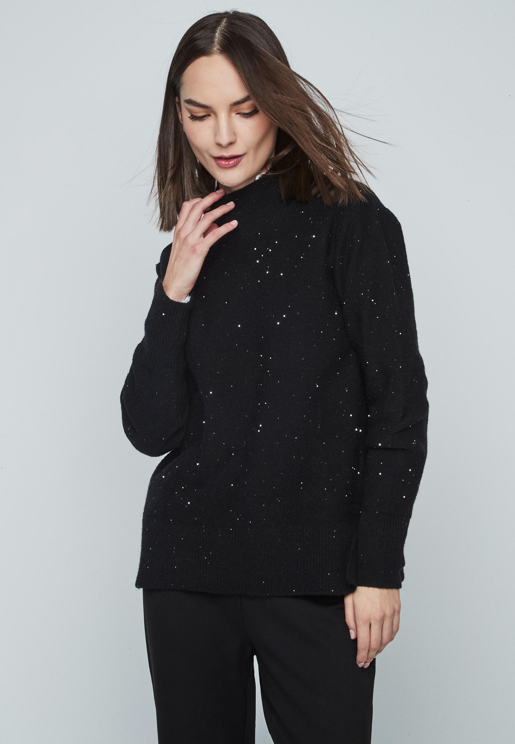 Jersey de mujer de cuello redondo con lentejuelas y manga larga