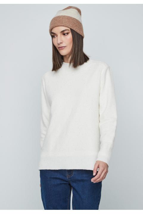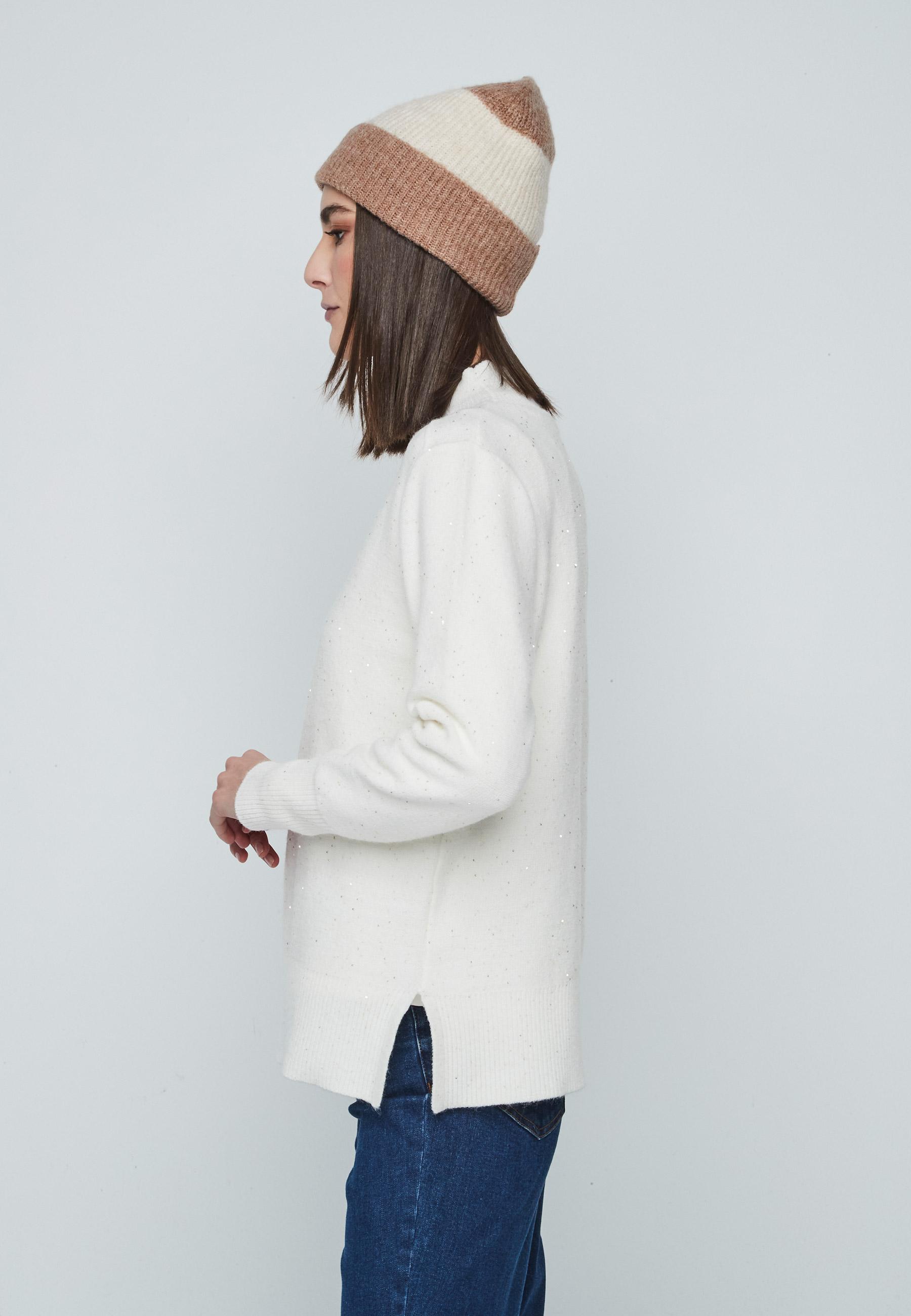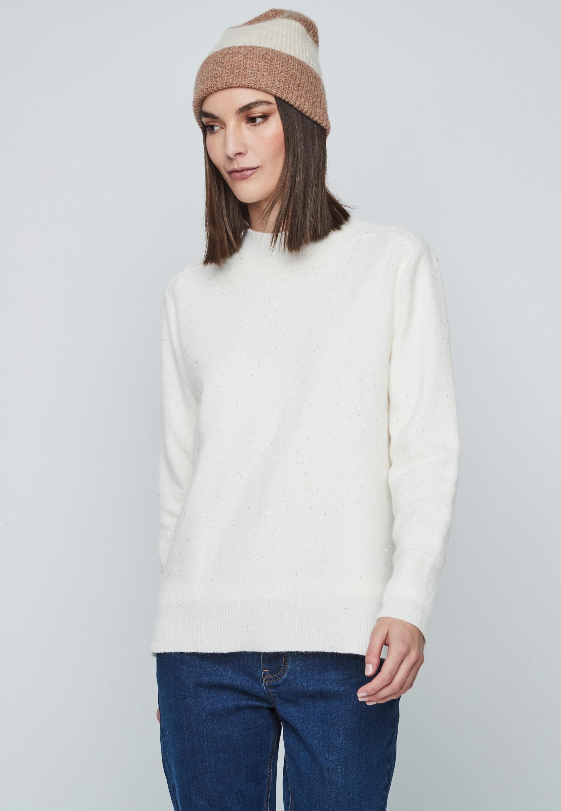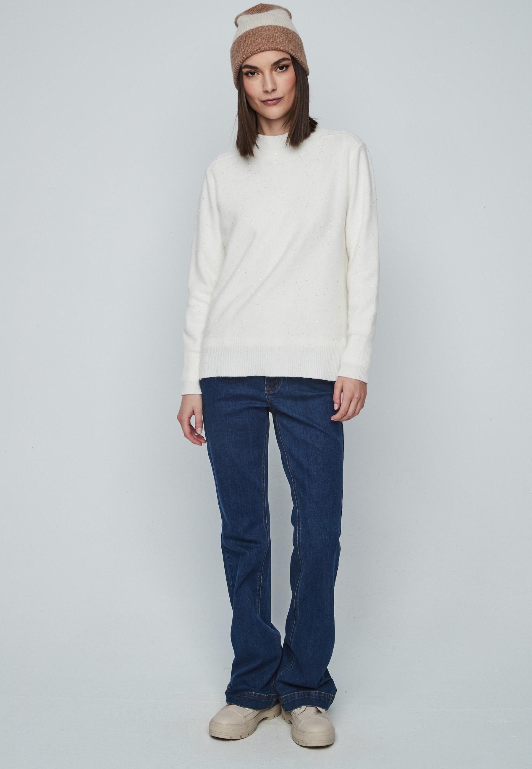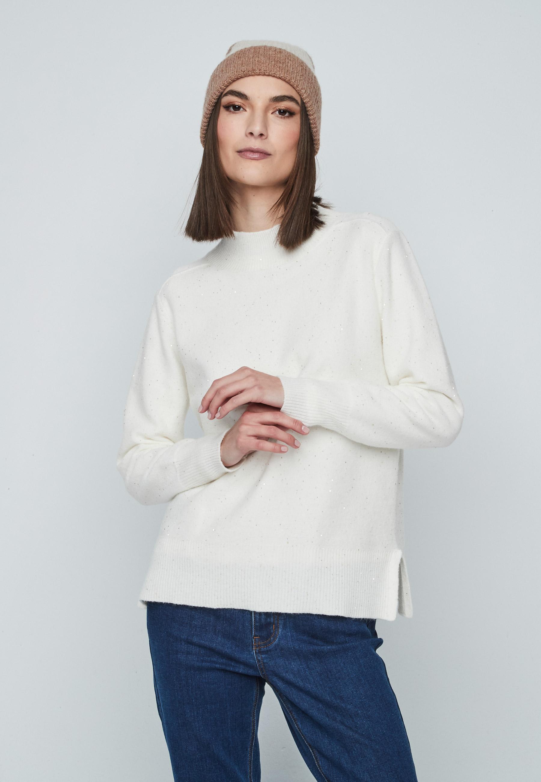 Jersey de mujer de cuello redondo con lentejuelas y manga larga