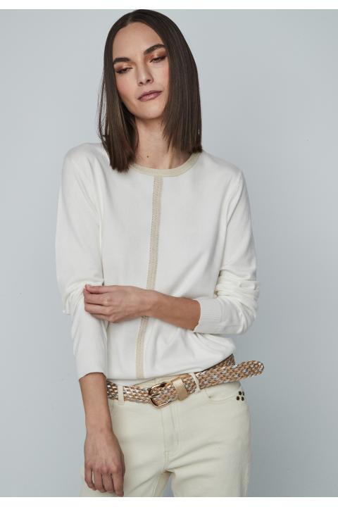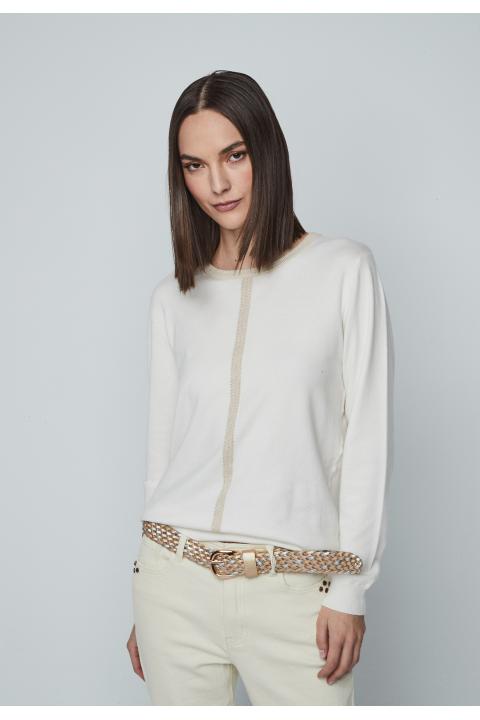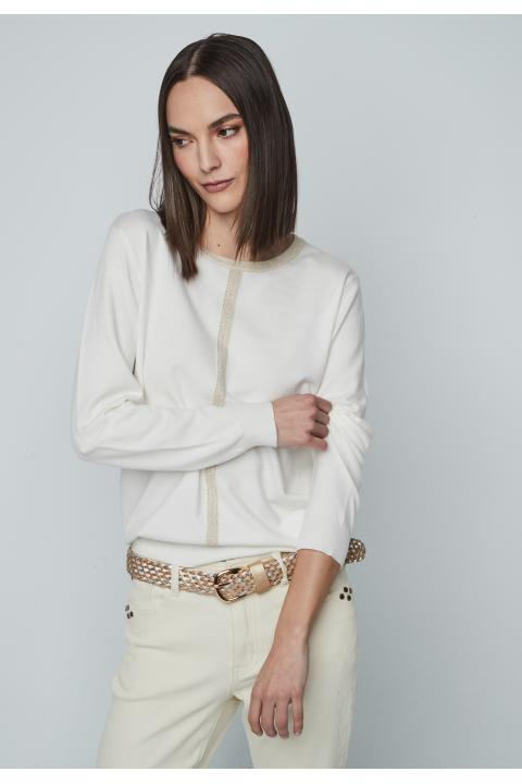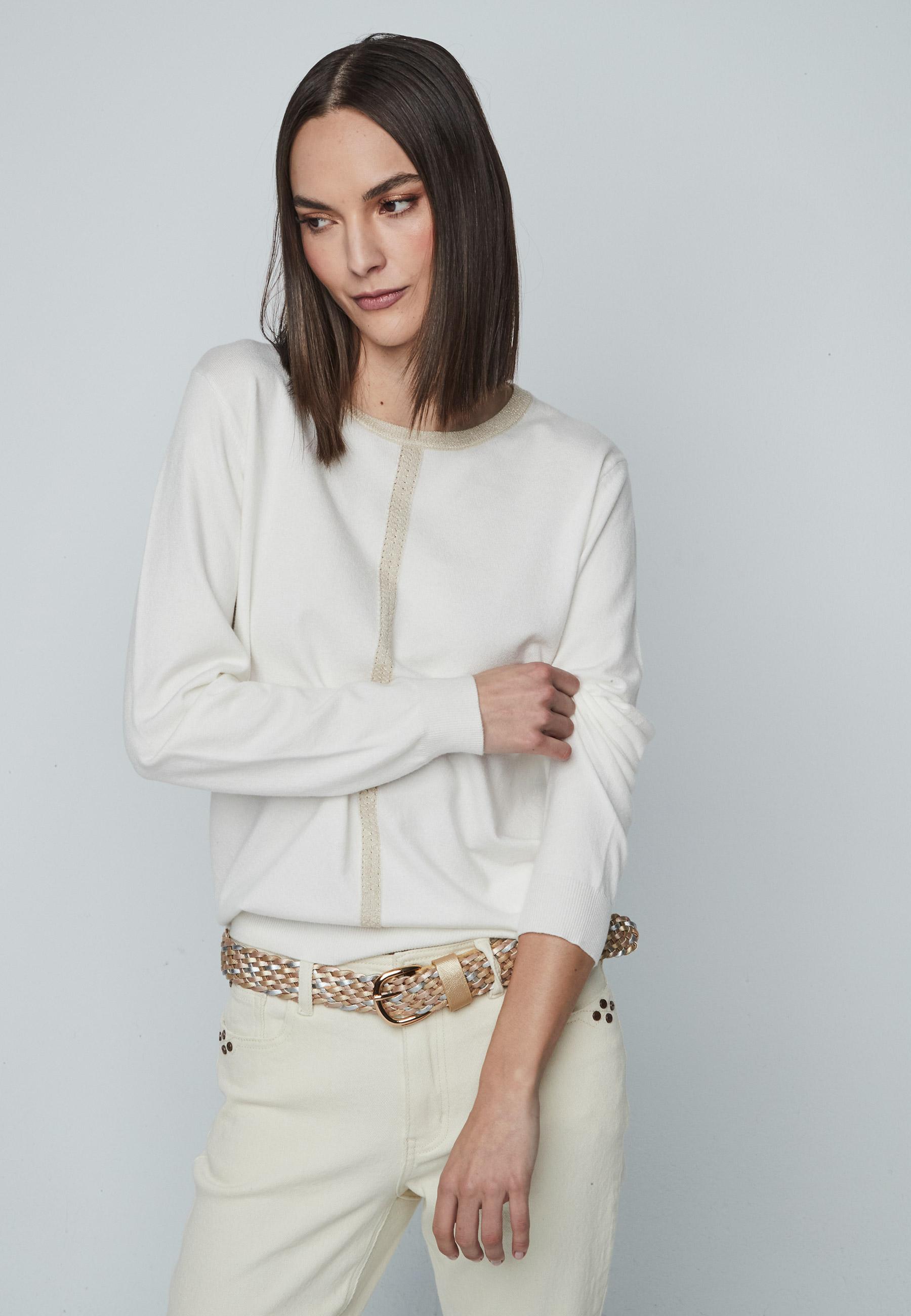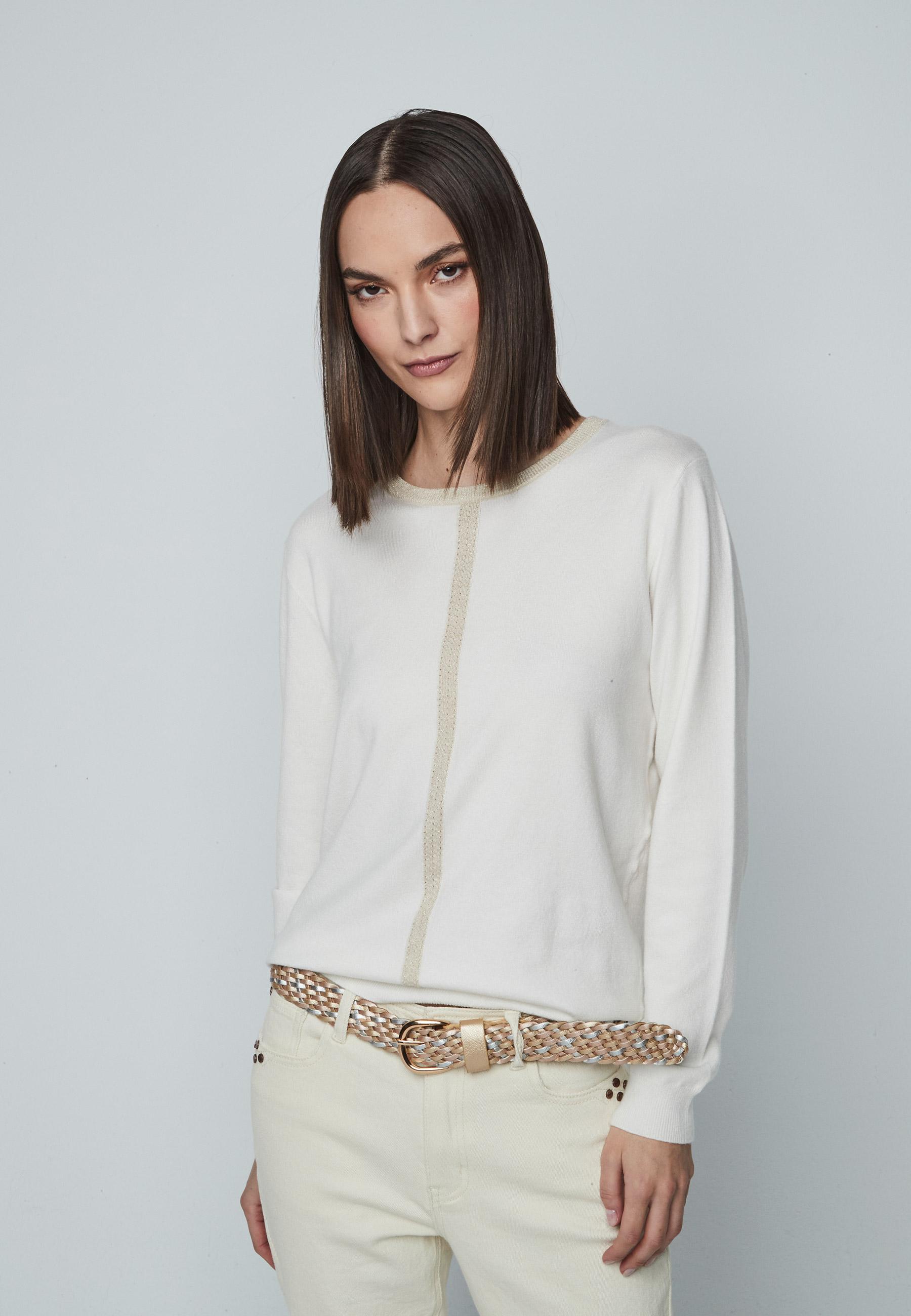 Jersey de mujer de cuello redondo con detalle de lurex y manga larga
