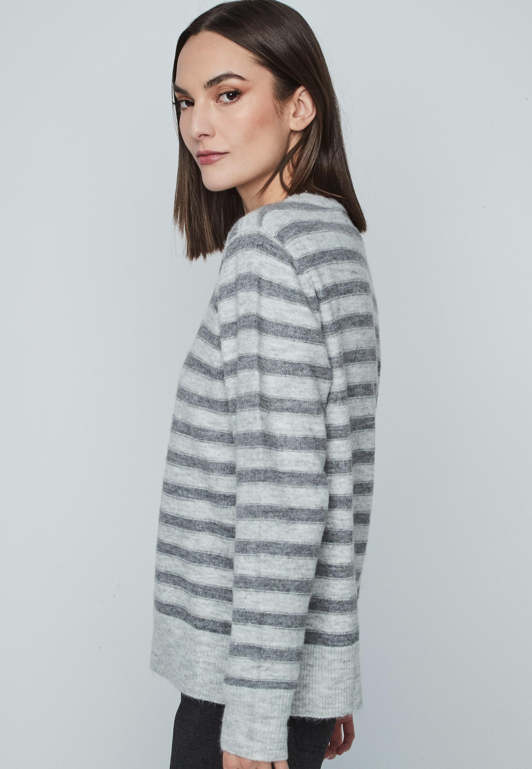 Jersey de mujer cuello redondo de rayas y lurex con manga larga