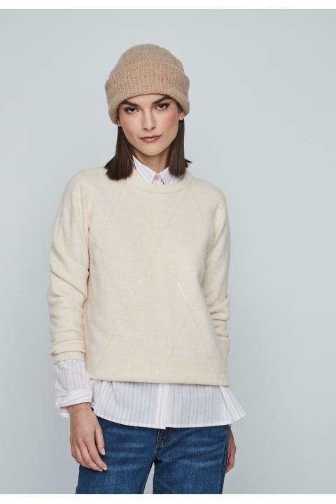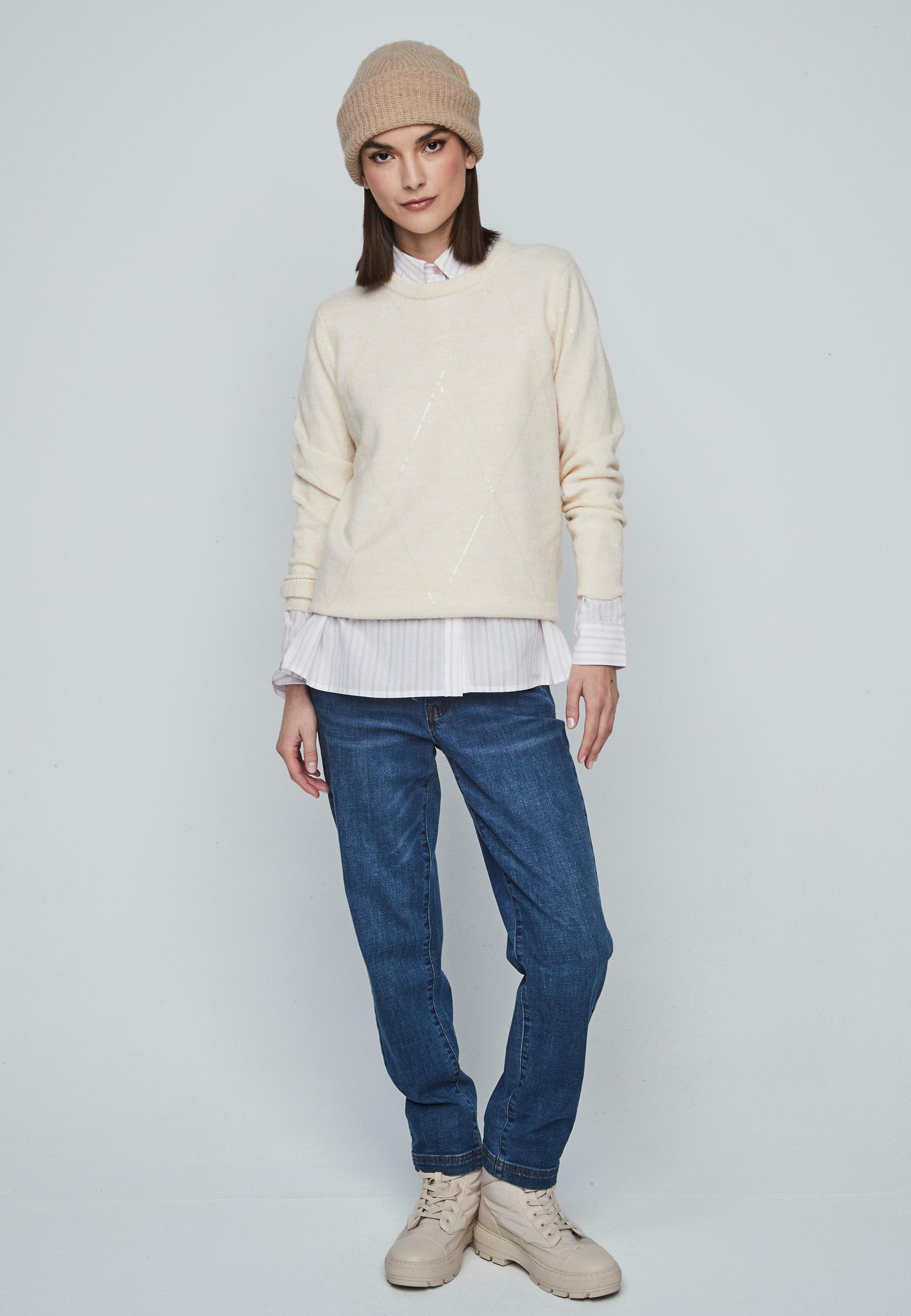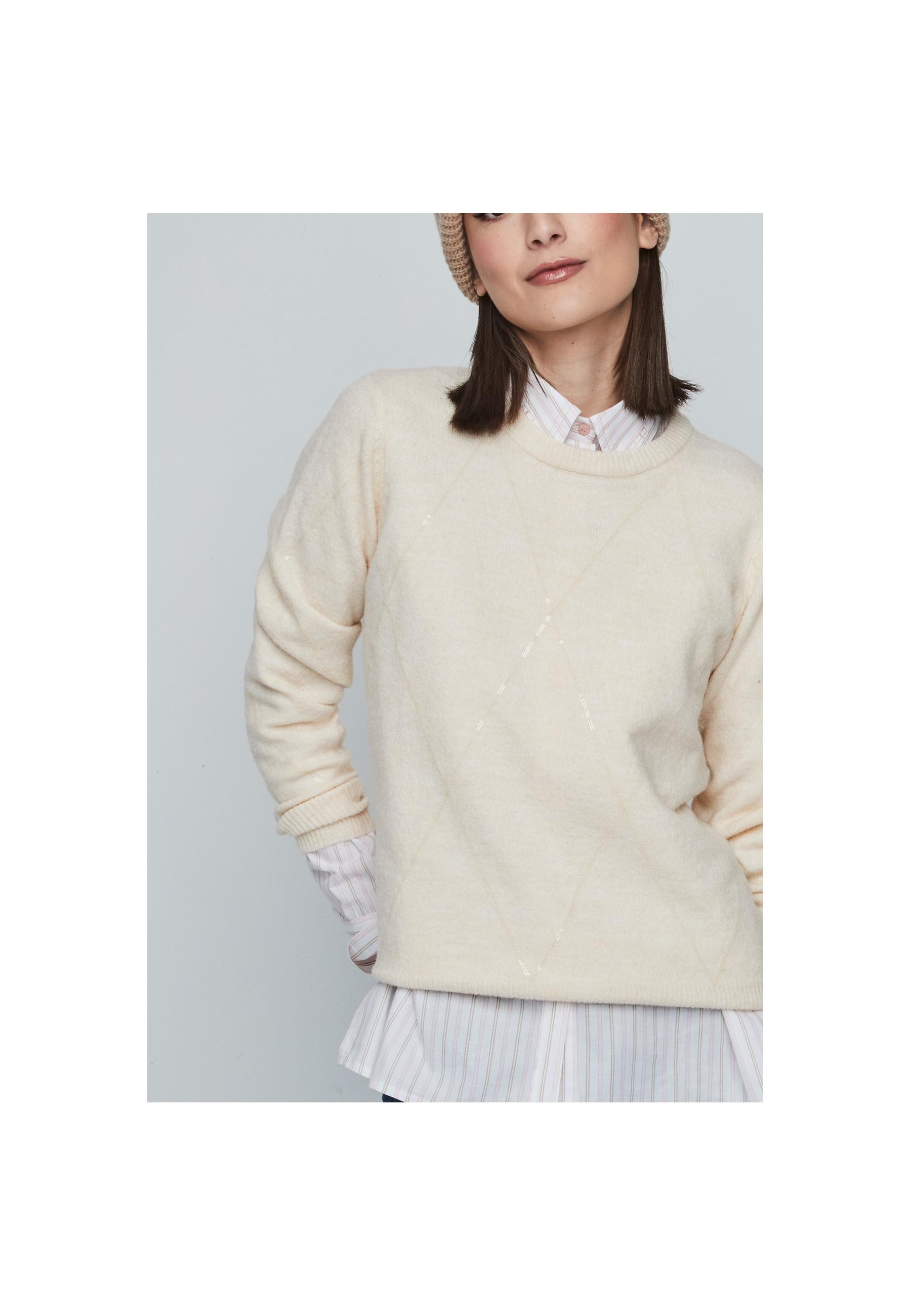 Jersey de mujer cuello redondo de manga larga con lentejuelas