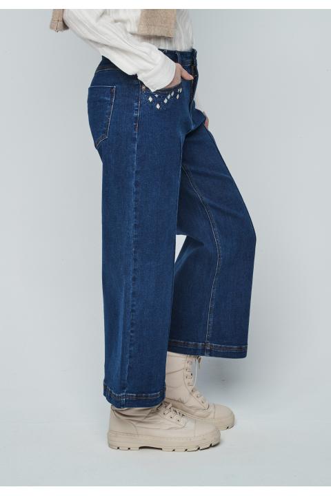 Jeans crop costura DENIM OSCURO