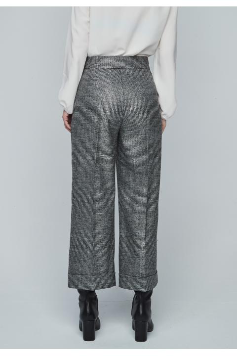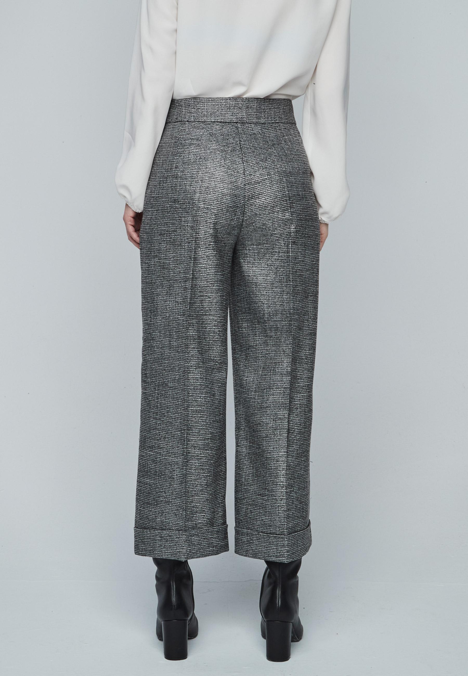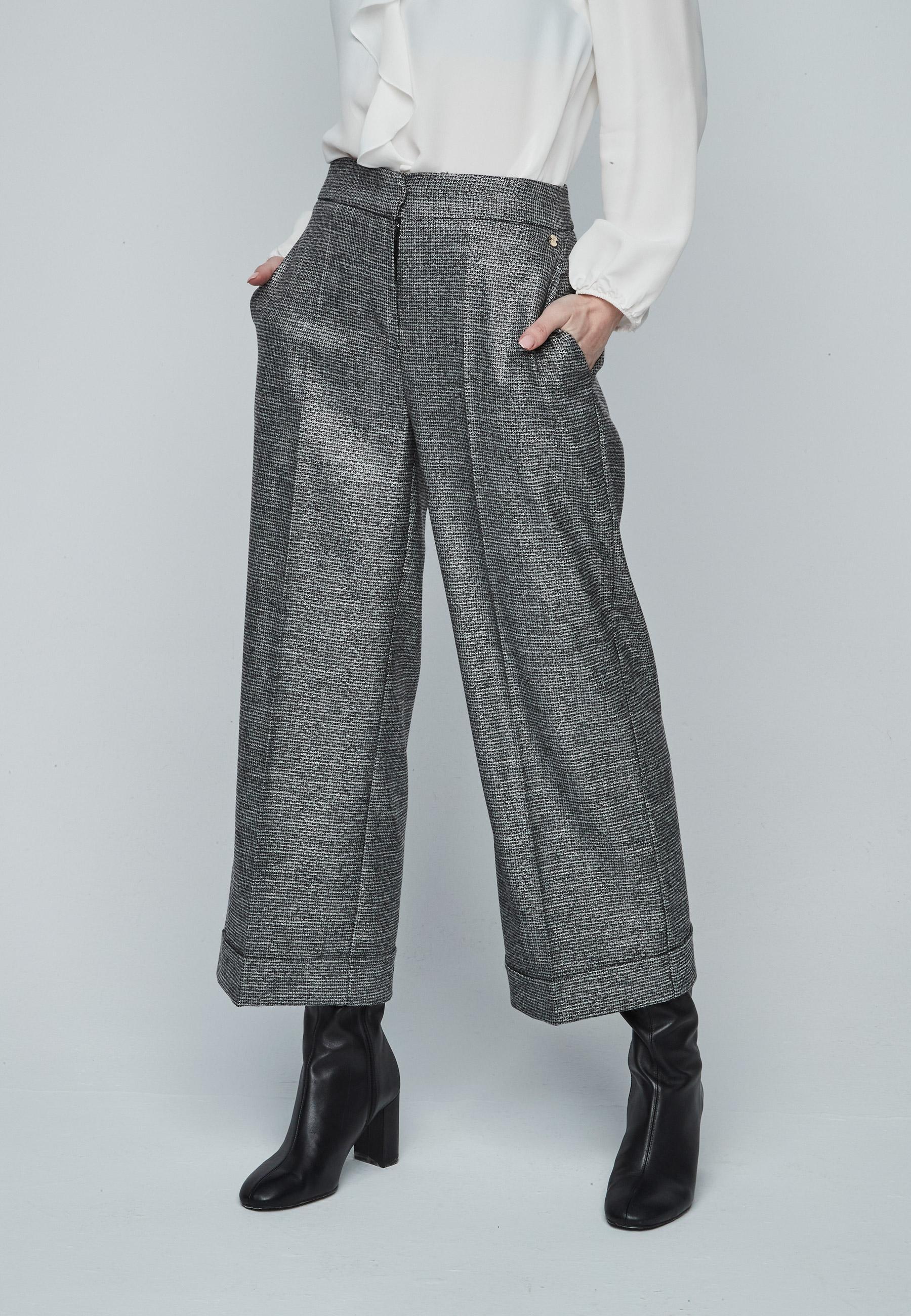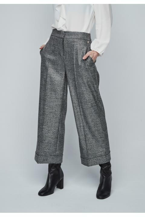 Pant. culotte micro cuadro lurex.Traje NEGRO